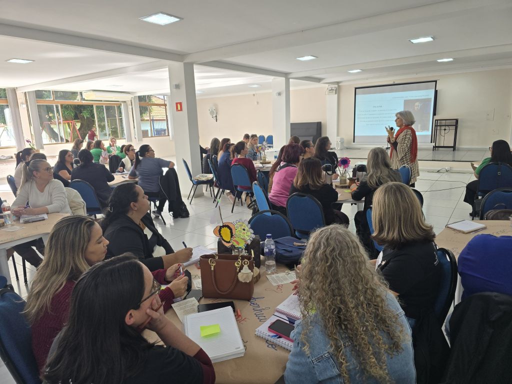 Pela manhã, a atividade foi direcionada aos coordenadores pedagógicos das instituições. Com o tema “Do pertencimento ao sucesso da aprendizagem”, a formação abordou a importância de fortalecer os vínculos entre os estudantes e o ambiente escolar como estratégia para potencializar os resultados educacionais. A palestrante destacou o papel dos coordenadores na mediação entre o planejamento pedagógico e as vivências dos alunos, promovendo uma cultura de pertencimento que impacta diretamente na aprendizagem.