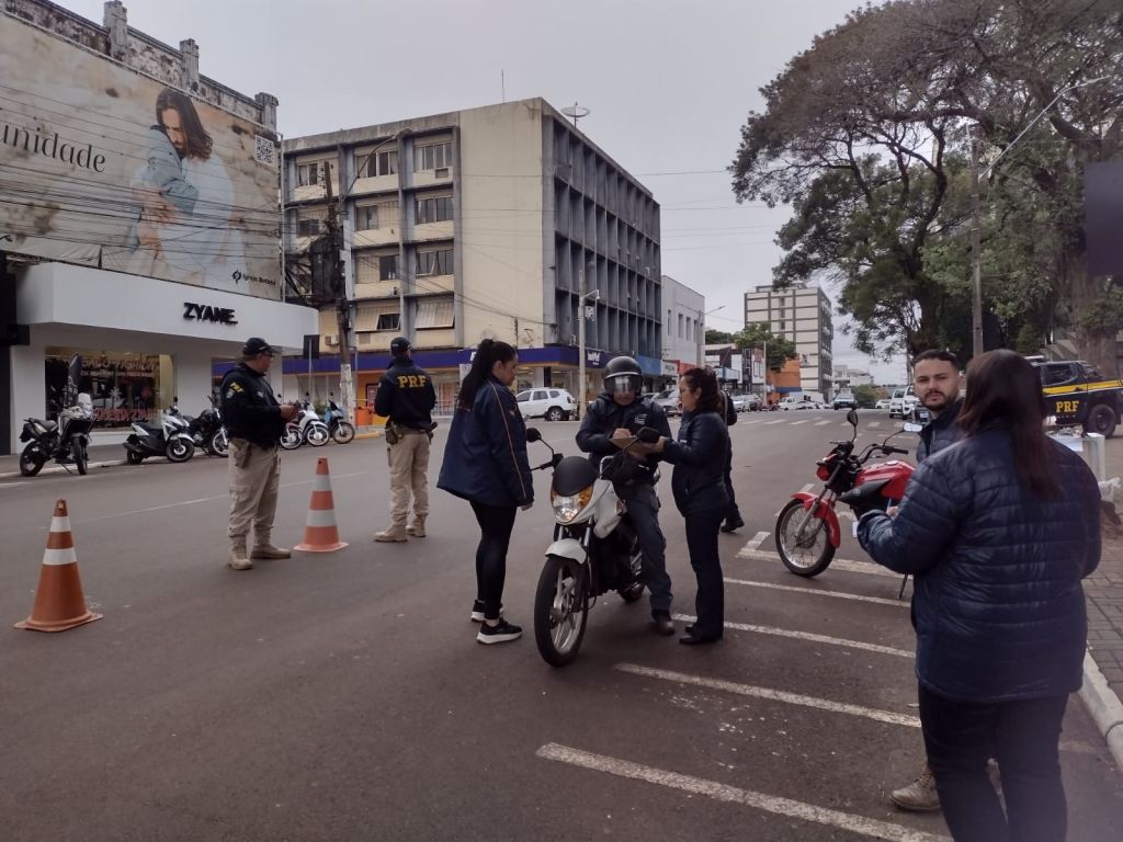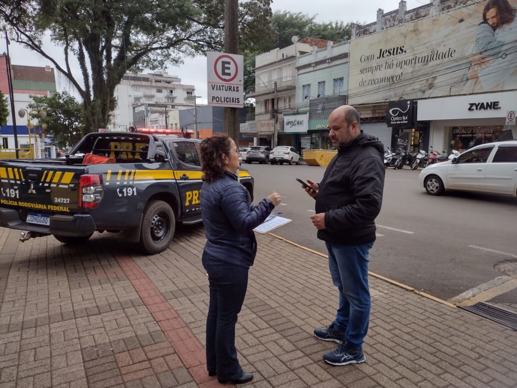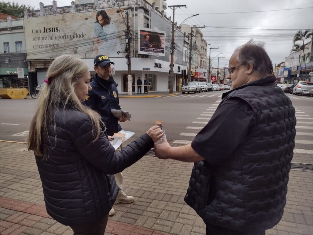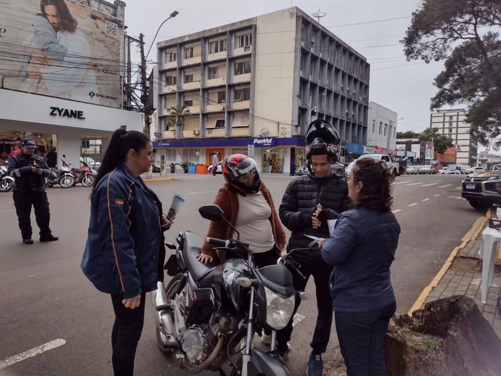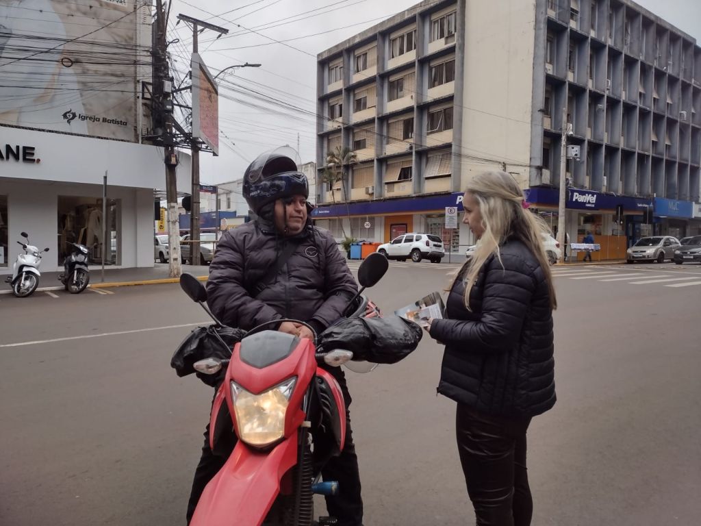 A Coordenadoria de Trânsito, Polícia Rodoviária Federal, SEST/SENAT e o CFC Pizzuti, abordaram condutores e pedestres com o objetivo de orientar e fazer refletir sobre a ação diária de cada cidadão no que se refere ao trânsito de nossa cidade. Com foco no cumprimento das leis de trânsito e da importância de desacelerar nas ruas, motociclistas, motoristas e pedestres, receberam panfletos explicativos sobre o Maio Amarelo e foram instruídos acerca das suas responsabilidades, direitos e deveres.