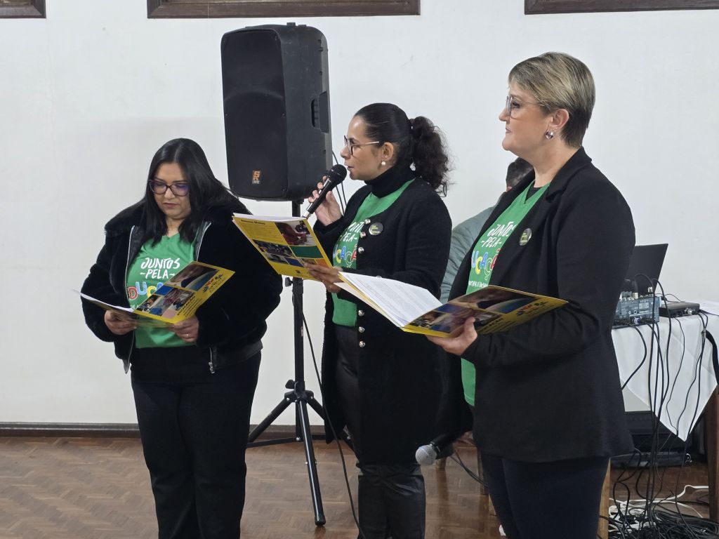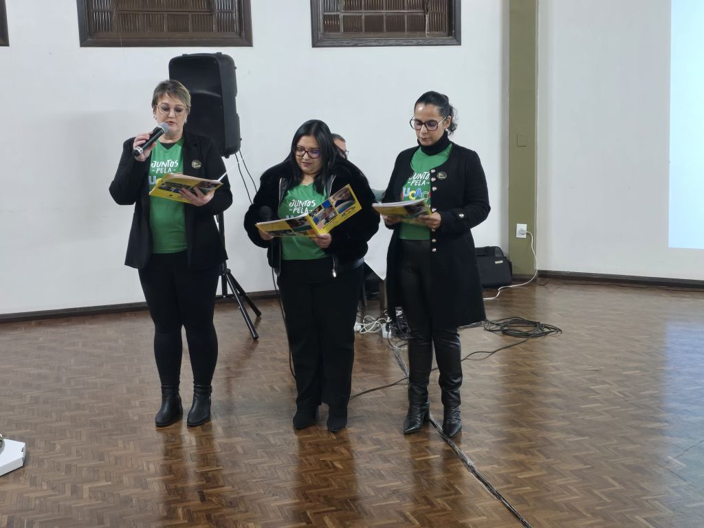 Na ocasião, a coordenadora pedagógica Denise Siekierski e as adjuntas pedagógicas Viviane Ceratti e Leila Ataides apresentaram a Política Municipal de Alfabetização, que servirá como documento orientador para as escolas da rede municipal.