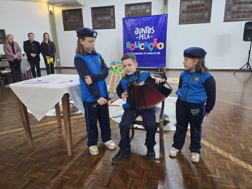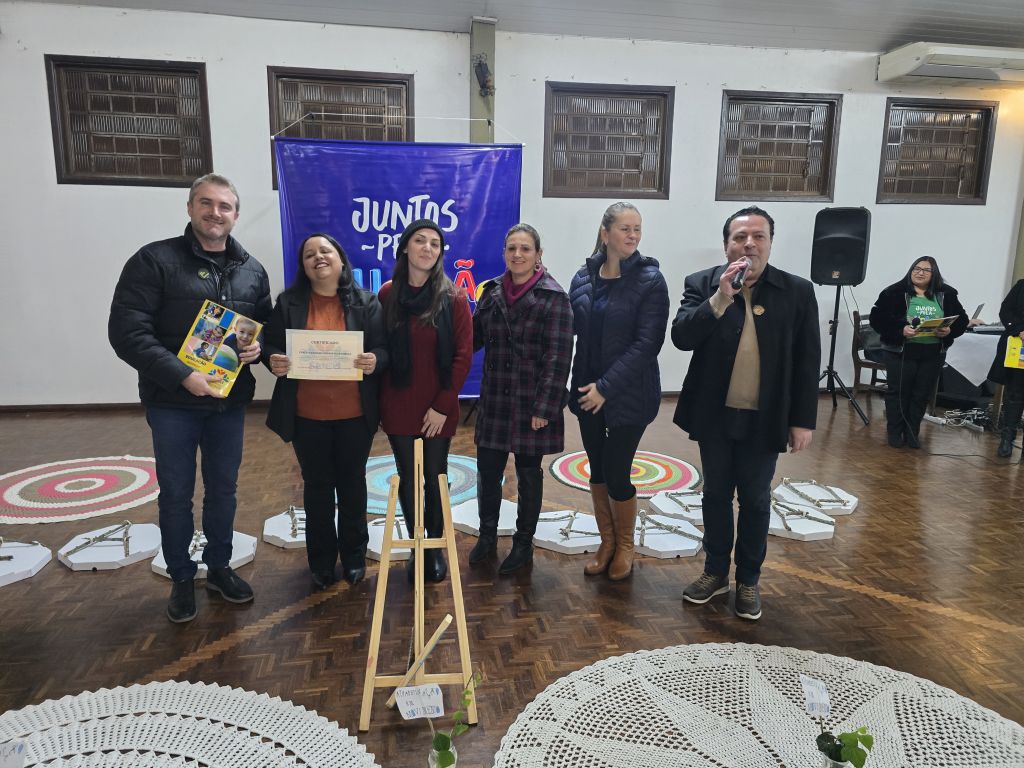 Durante o evento, o prefeito e o secretário entregaram um certificado à EMETI Eugênio Ernesto Storch, que se destacou no Programa Alfabetiza Tchê 2025 como uma das 200 escolas com os melhores resultados em alfabetização nos anos iniciais do Ensino Fundamental. A escola também recebeu um vale de R$ 5 mil para aquisição de materiais pedagógicos.