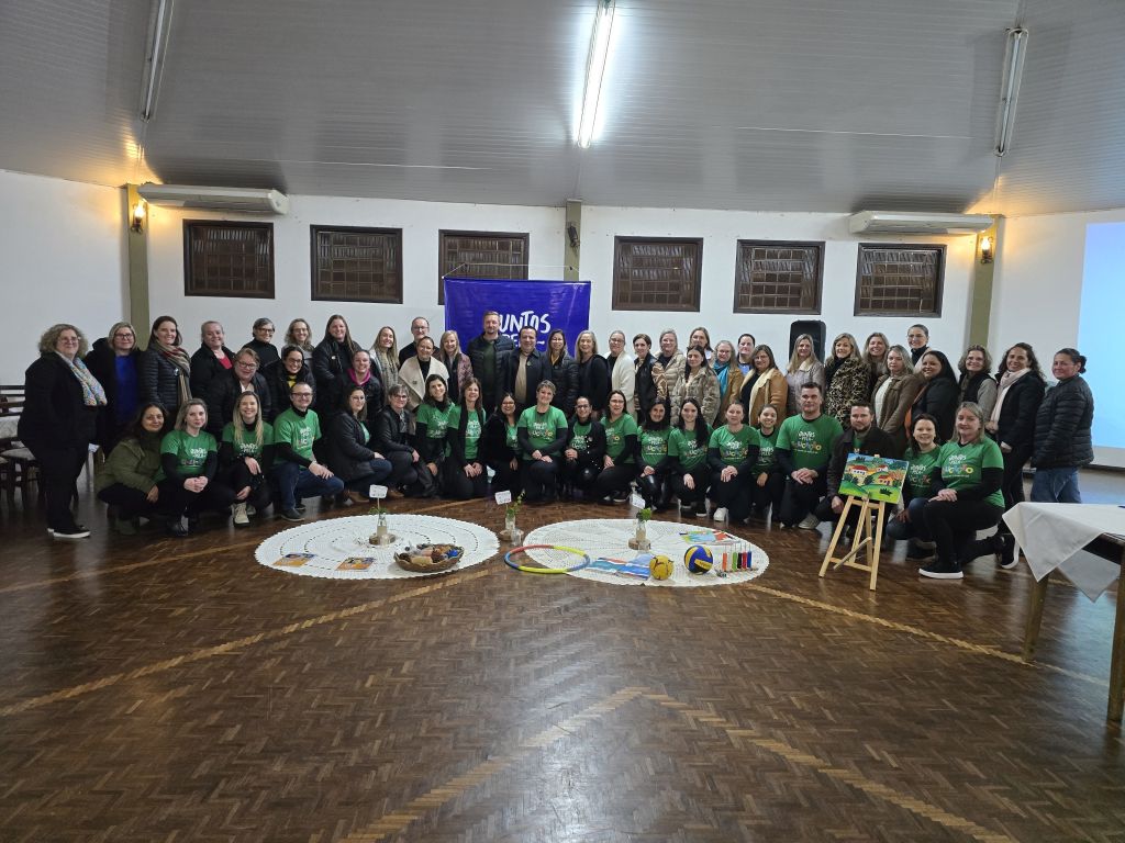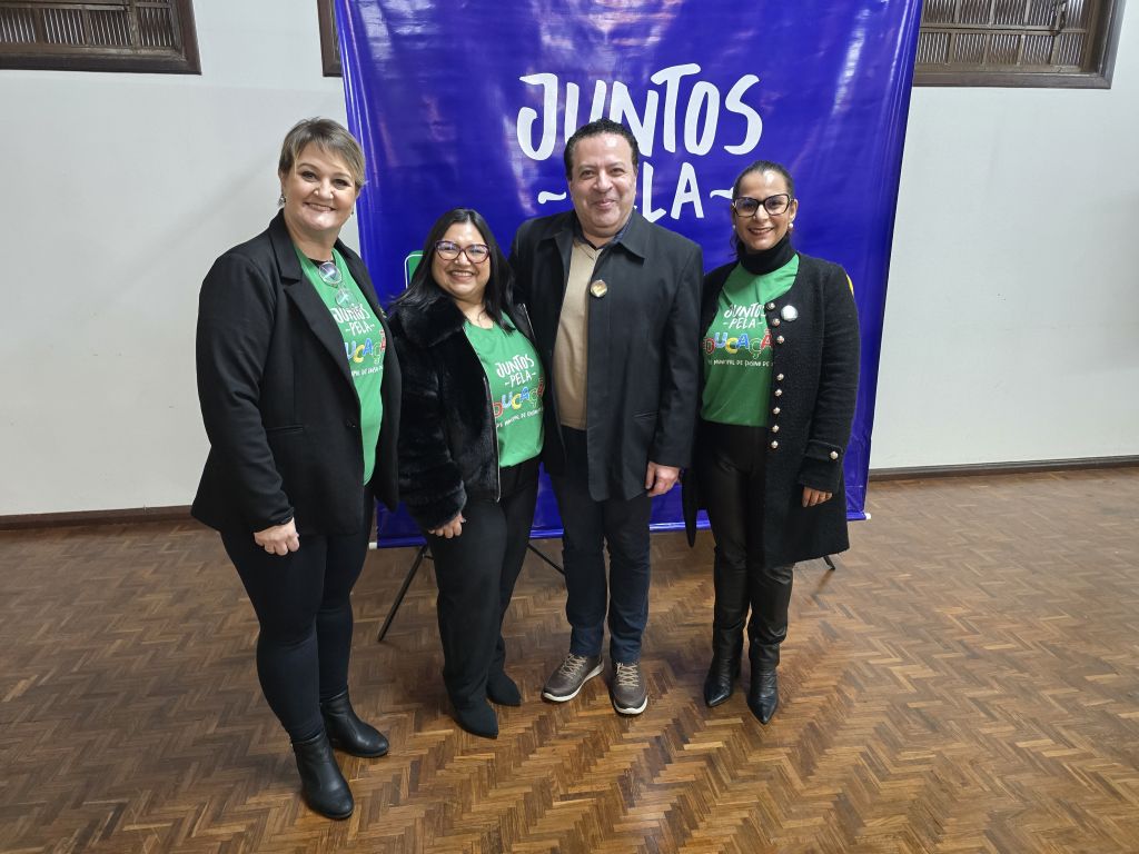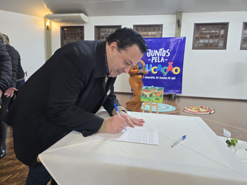 O pacto foi formalmente assinado pelo prefeito Andrei Cossetin, pelo secretário Cláudio de Souza, pela secretária adjunta Andréia da Rosa, pela equipe gestora e pedagógica da SMEd, por autoridades presentes e pelas diretoras das 26 escolas da rede municipal.