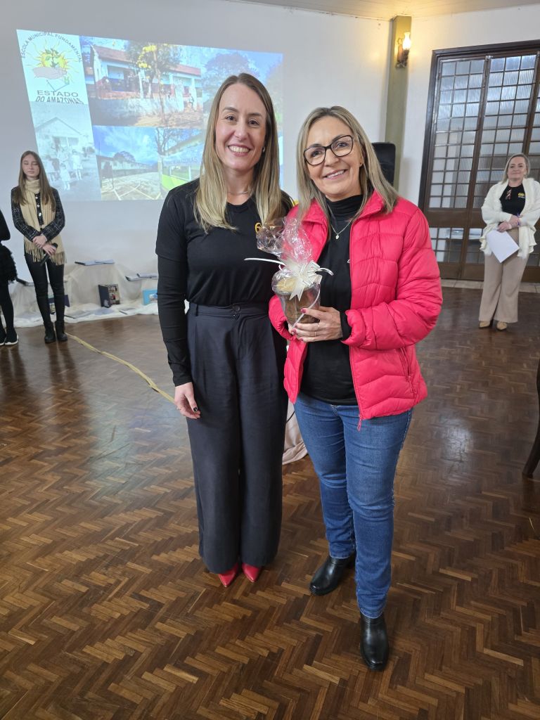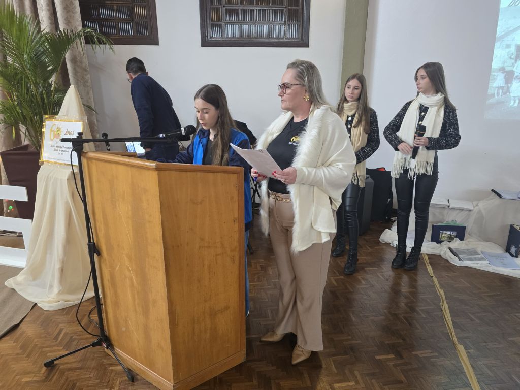Durante a solenidade, a diretora da escola, Cleonice Becker Mayer, destacou a trajetória da instituição e agradeceu a todos os profissionais que contribuem diariamente para o funcionamento da escola.