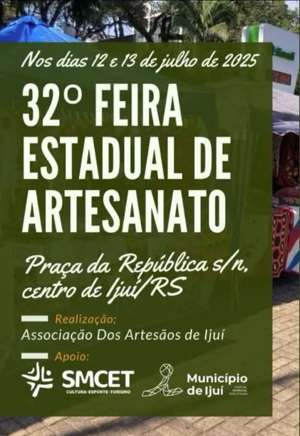 O município de Ijuí recebe na próximo final de semana, dias 12 e 13, a 32ª Feira Estadual do Artesanato, uma promoção da Associação dos Artesãos de Ijuí - ADAI com apoio do Governo Municipal e SMCET.