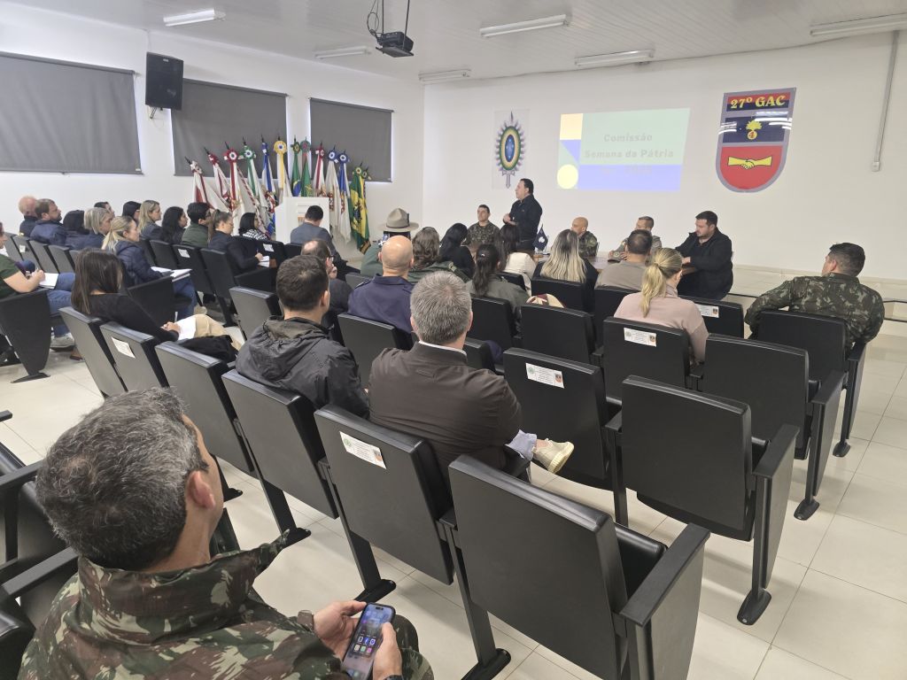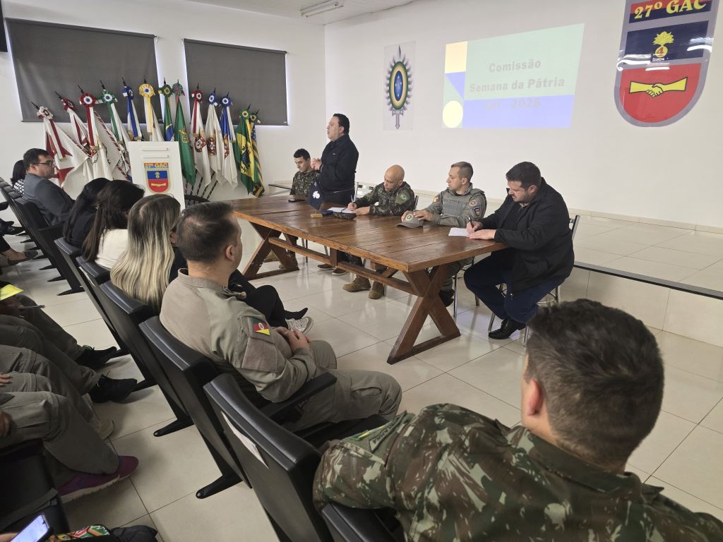 Na tarde desta quinta-feira (07), ocorreu no auditório do 27º Grupo de Artilharia de Campanha (GAC) a reunião da Comissão Organizadora da Semana da Pátria 2025 em Ijuí. O encontro teve como objetivo alinhar os preparativos para os três principais momentos do evento: a chegada do Fogo Simbólico, a abertura oficial da Semana da Pátria e o tradicional desfile cívico-militar de 7 de setembro.