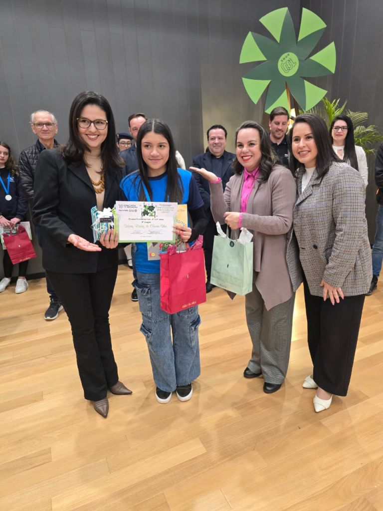 O secretário municipal de Educação, Cláudio de Souza, parabenizou os estudantes premiados, suas famílias e as professoras orientadoras, Eliane Holziechner Taube e Cheila Cristiane de Souza, destacando a importância da participação dos alunos em iniciativas que valorizam a escrita e o aprendizado.