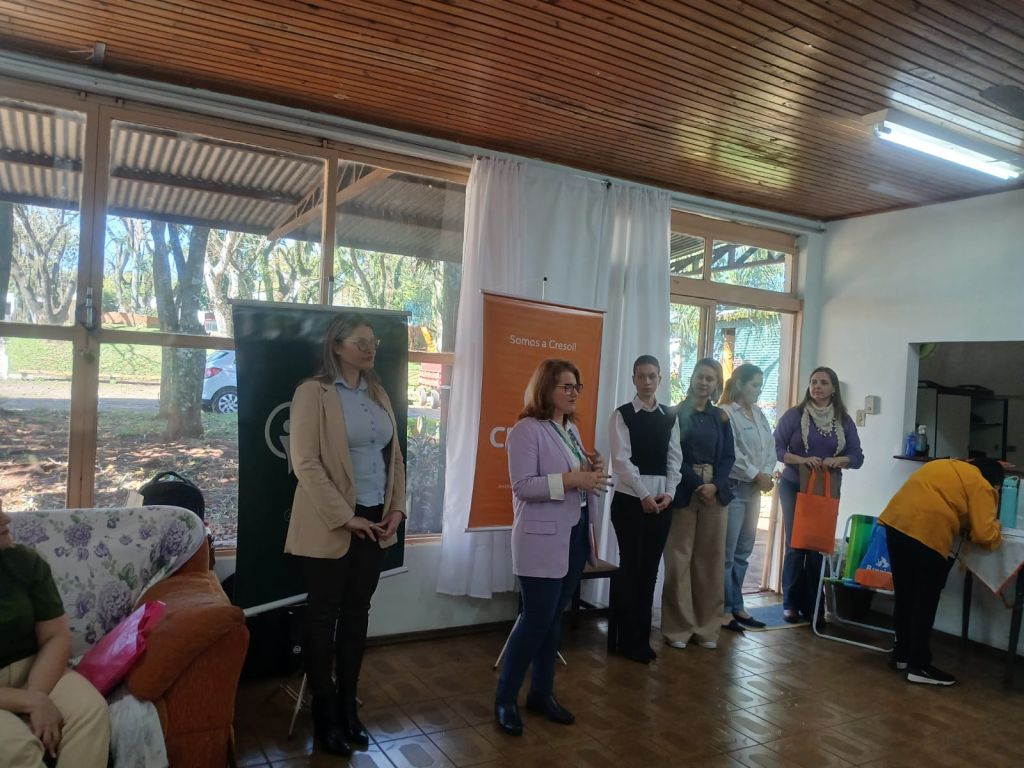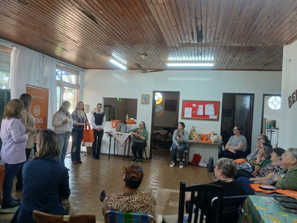 Participaram do encontro, Primeira-dama Caroline Konageski, representantes da Cresol, Gerente de Agência, Michele Daiana Busanello, Gerente de Negócios PF, Giana Luiza Parnoff, Assistente de Negócios PJ Emilia Ester Fialho Zuchetto, Assistente de Negócios AGRO, Tatiane Batista Boeno Peno Nogueira, Analista de relacionamento, Jelci Danieli, Assistente de relacionamento, Márcia Tomasin e a comunidade.