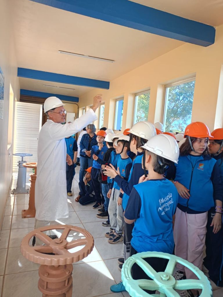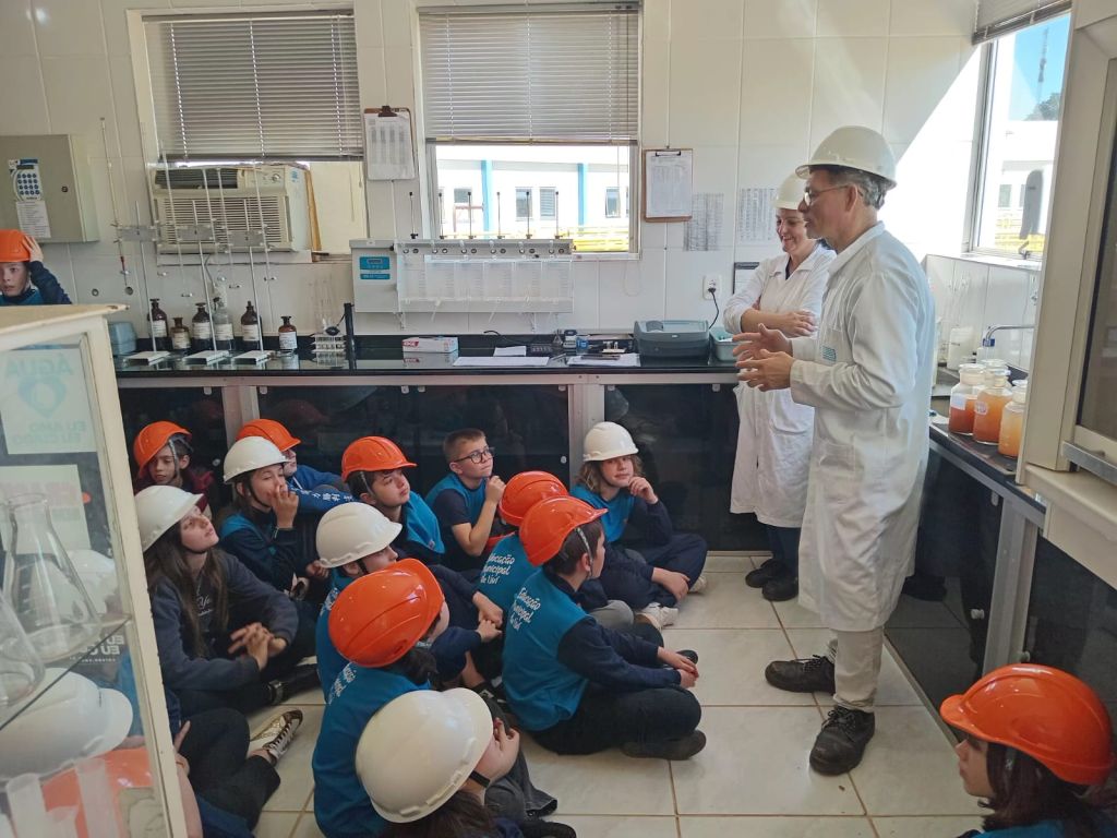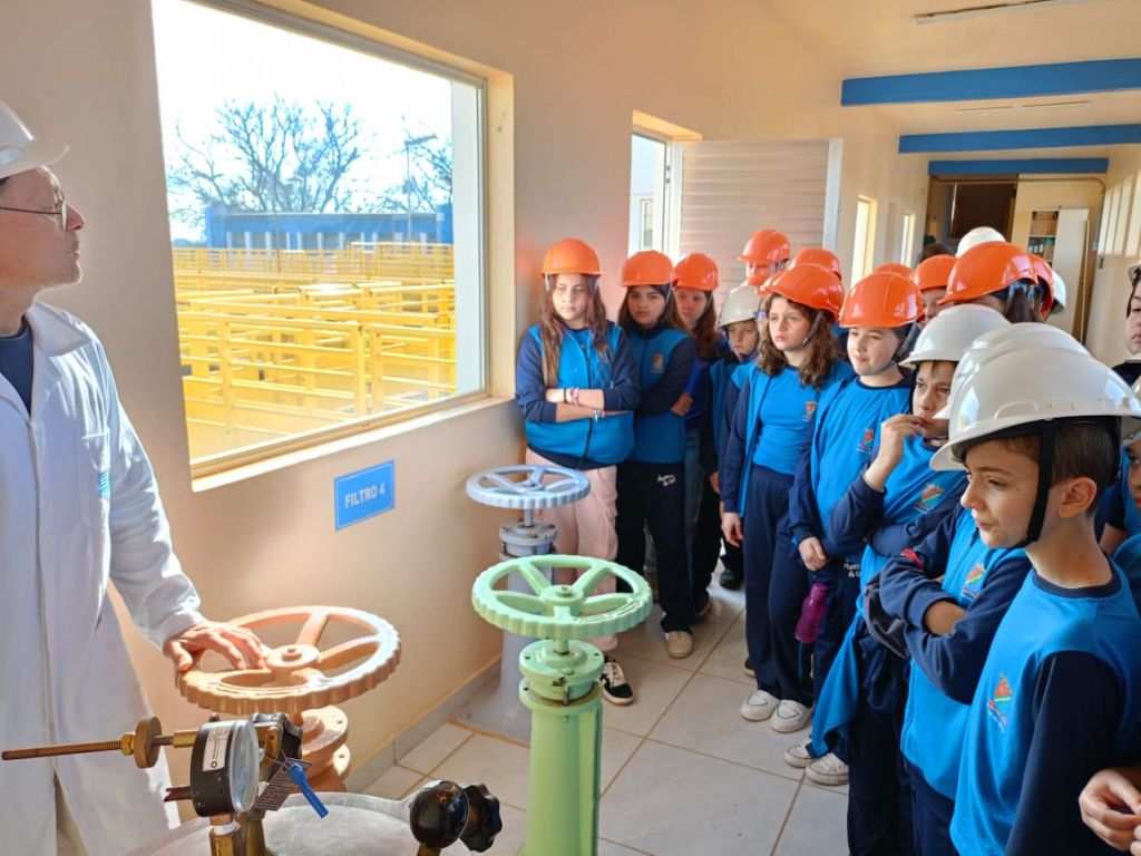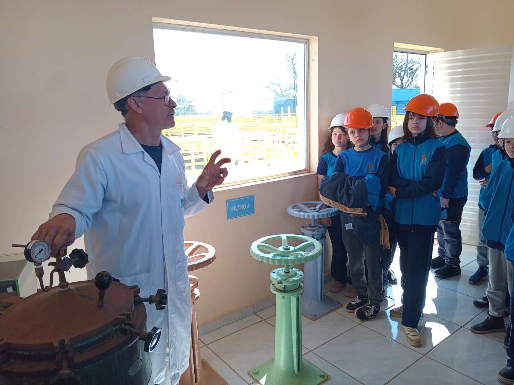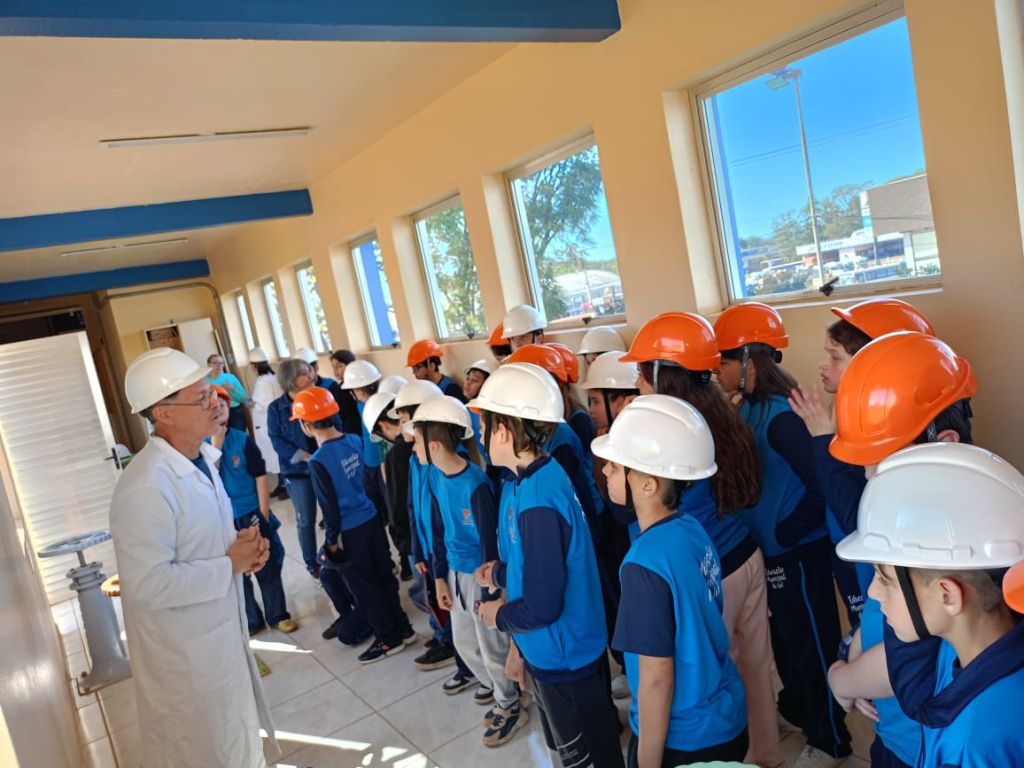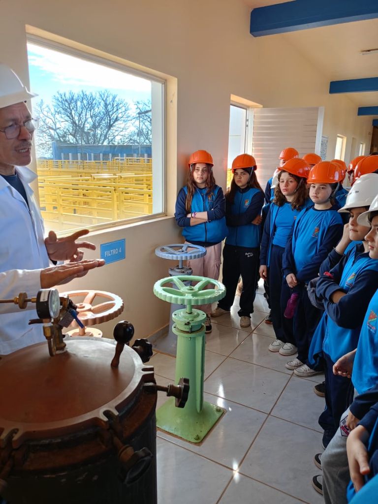 Os estudantes do 5º ano da Escola Municipal Fundamental Soares de Barros realizaram, nesta quinta-feira (11), uma visita de estudos à Estação de Tratamento de Água da Corsan, em Ijuí. A atividade foi organizada pelas professoras de Ciências, Marluci, Maisa e Rose, com o objetivo de aproximar os conteúdos trabalhados em sala de aula da prática cotidiana.