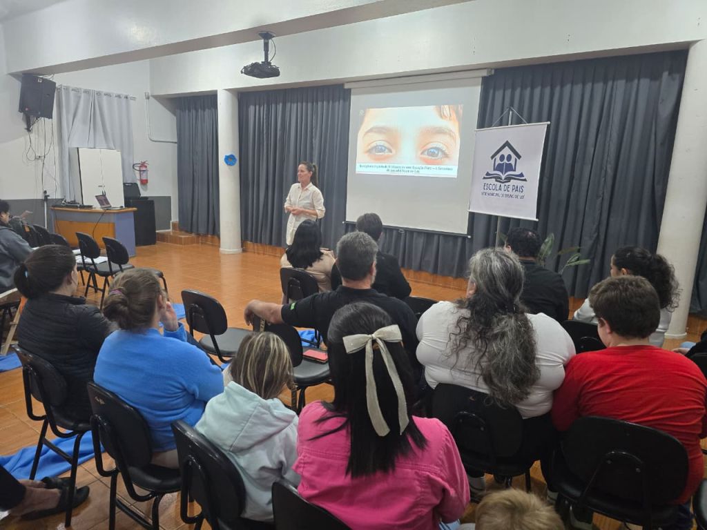 O encontro foi direcionado aos pais padrinhos, representantes escolhidos por cada turma da instituição. A coordenadora do programa, Ruth Hein, explicou que o Imeab foi selecionado como escola-piloto por ser a maior da Rede Municipal e por sua estrutura, servindo de referência para futuras implantações.