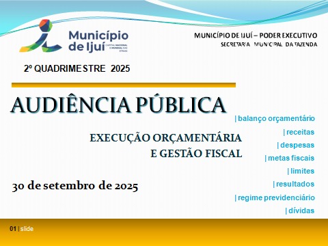 A Secretaria da Fazenda fará a prestação de contas da Gestão Fiscal segundo quadrimestre de 2025 e Relatório Resumido da Execução Orçamentária do quarto bimestre de 2025, com início às 9h30.