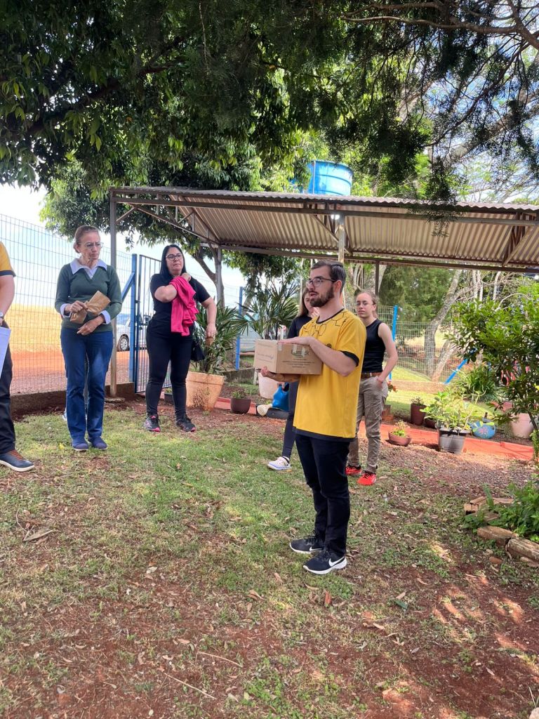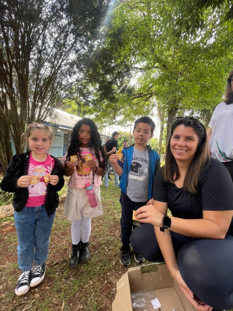 A programação incluiu uma sessão de cinema acompanhada de pipoca e suco, seguida por uma conversa sobre sustentabilidade e a importância das abelhas para o equilíbrio dos ecossistemas. Em seguida, os integrantes do clube e os estudantes realizaram o plantio e a distribuição de sementes de flores melíferas.