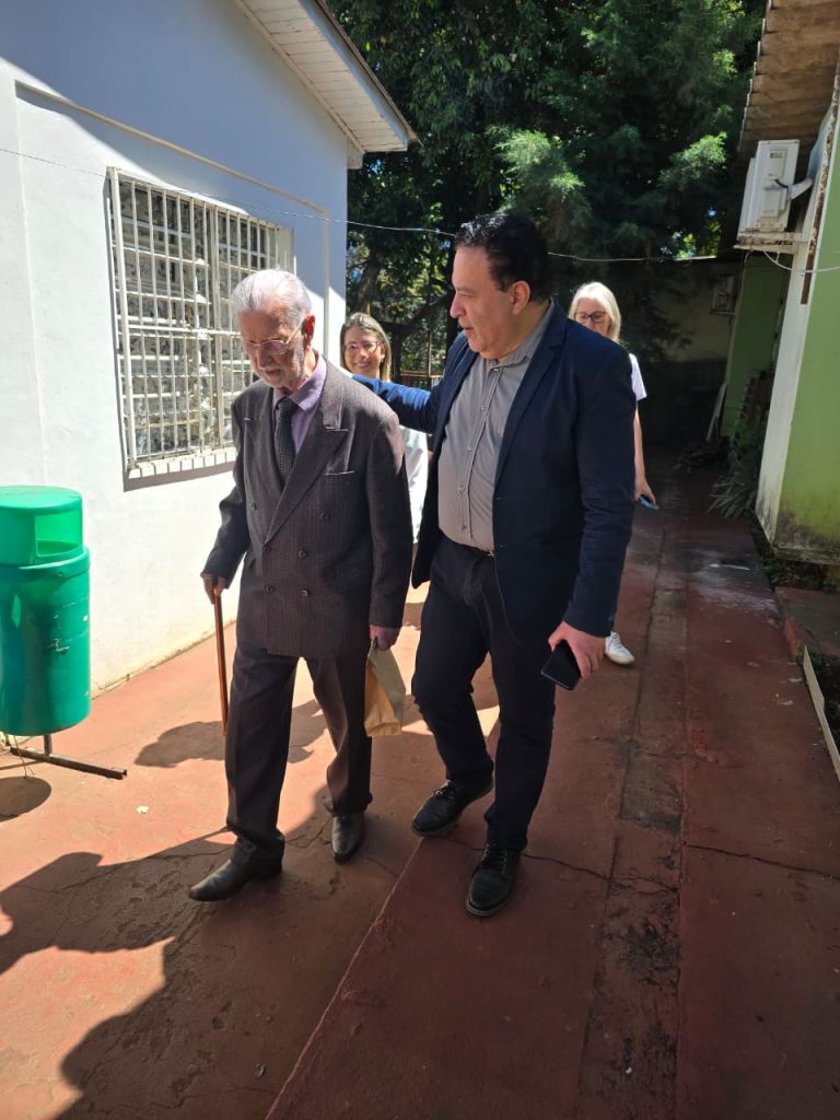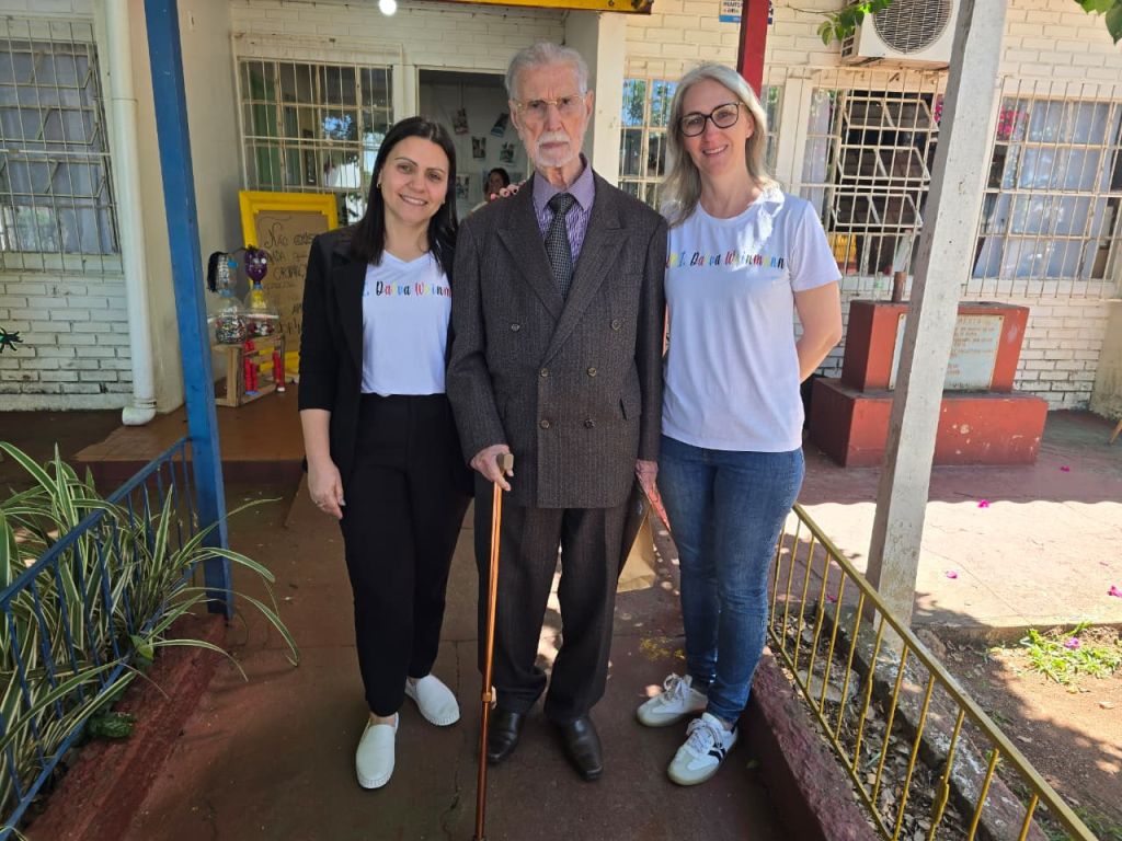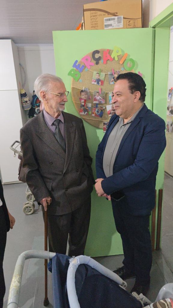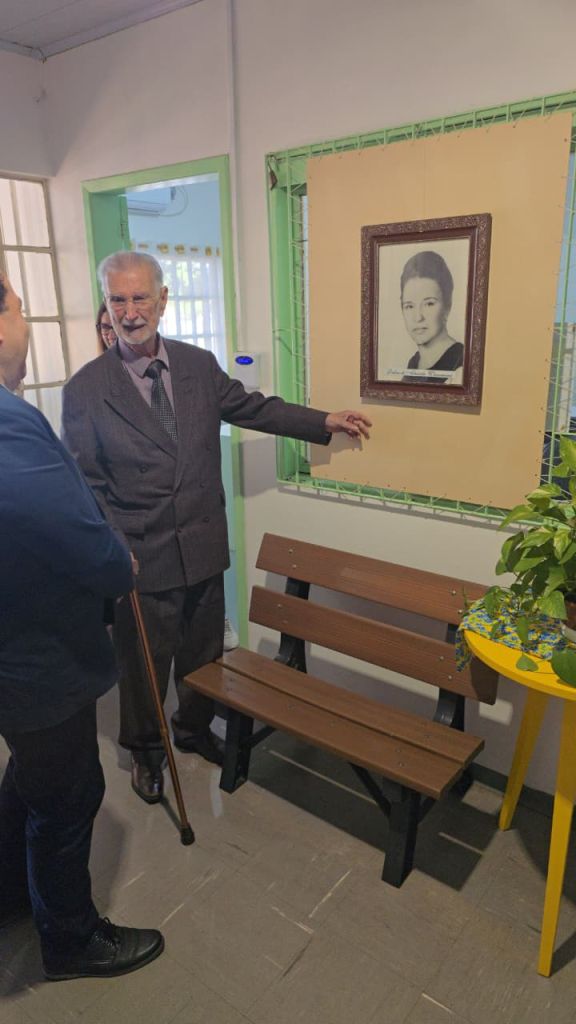 Aos 90 anos recém-completados, Amadeu se emocionou logo na entrada da escola, ao se deparar com o quadro que exibe a fotografia de sua mãe. Durante o percurso pelas salas de aula, foi recebido com abraços e palavras de carinho pelas crianças.