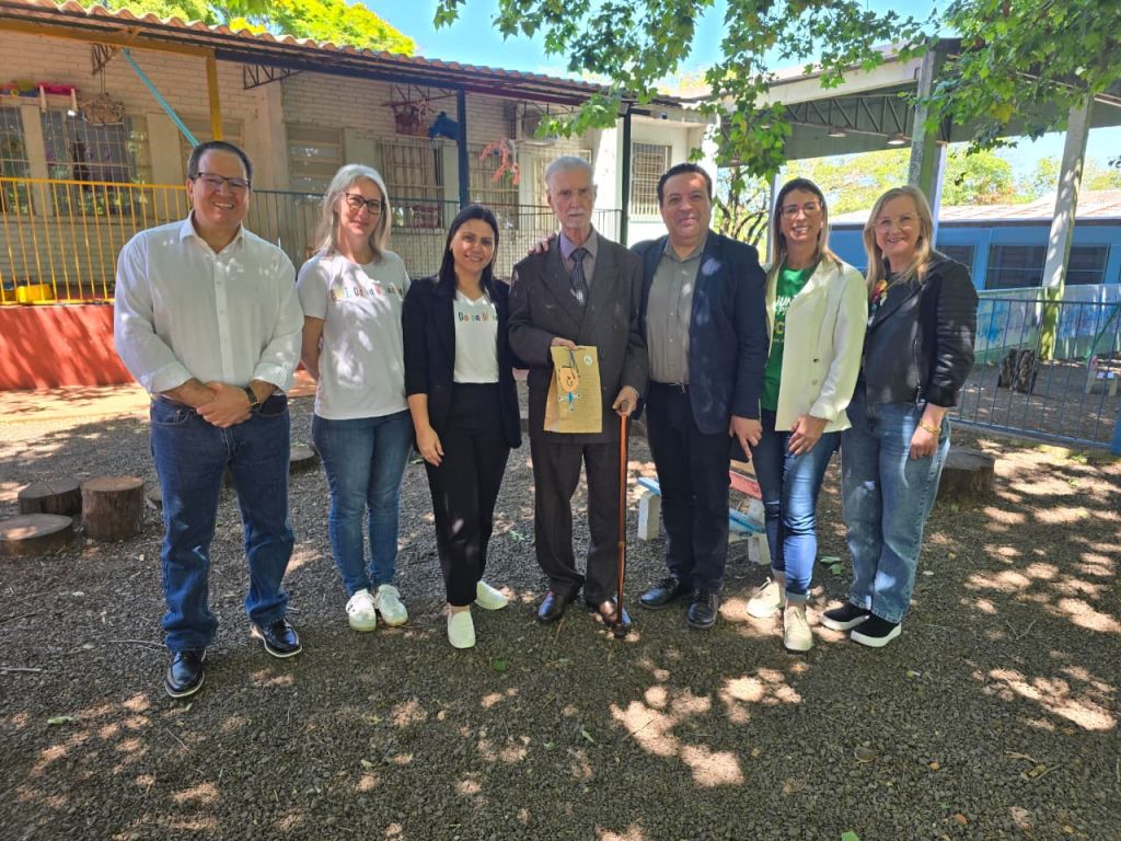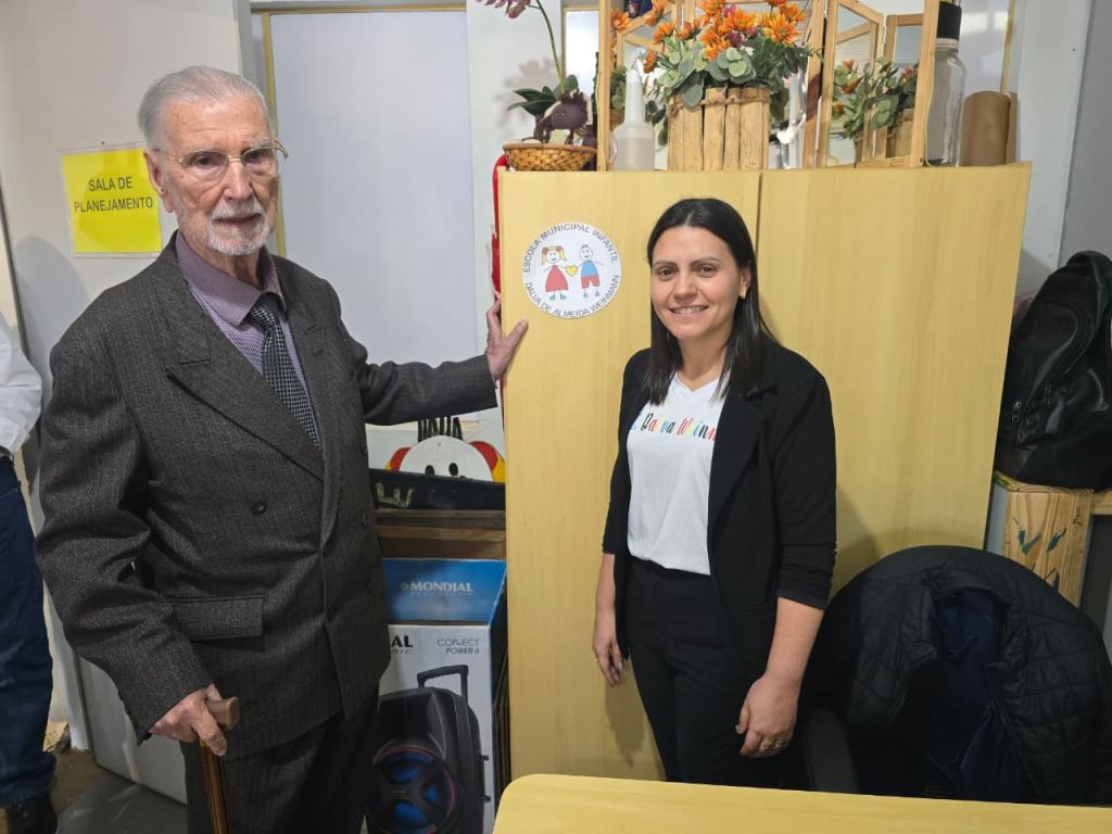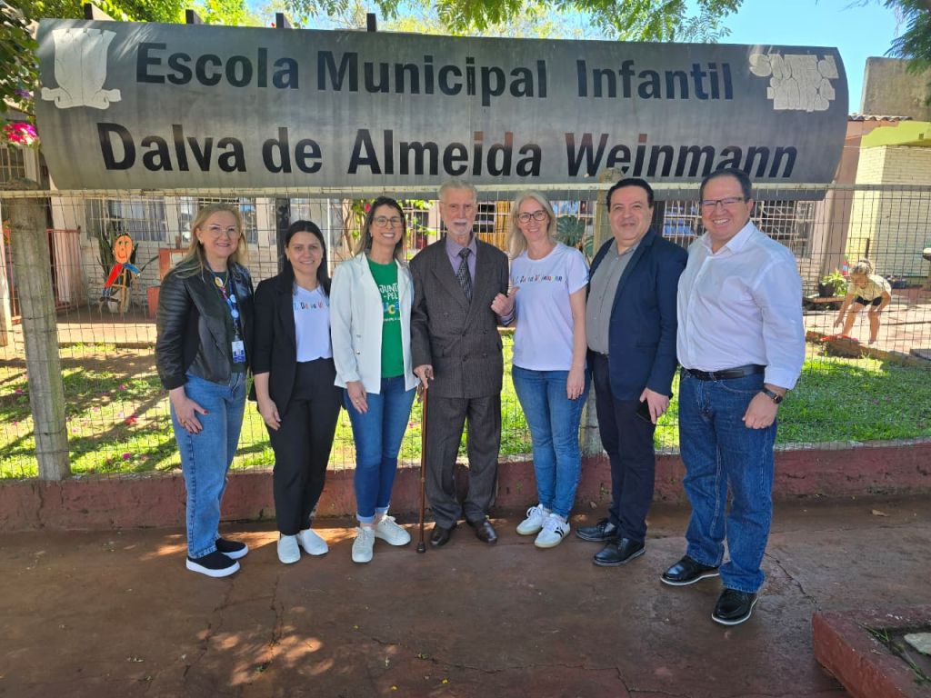 A manhã de terça-feira (14) foi marcada por emoção na Escola Municipal de Educação Infantil Dalva de Almeida Weinmann. A equipe diretiva e demais profissionais da instituição receberam a visita de Amadeu de Almeida Weinmann, filho de Dalva, que dá nome à escola.