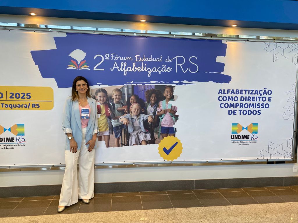 A Secretaria Municipal de Educação (SMED) esteve representada no 2º Fórum Estadual de Alfabetização do Rio Grande do Sul, realizado nesta segunda-feira (20), nas Faculdades Integradas de Taquara (Faccat). O município foi representado pela assessora pedagógica responsável pelos processos de alfabetização e letramento da Rede Municipal de Ensino, Rafaela Gusatti.