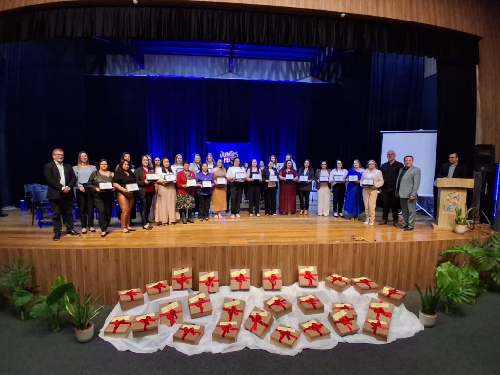 O Governo de Ijuí, por meio da Secretaria Municipal de Educação (SMED), promoveu na noite desta quinta-feira (30) a 4ª edição do Prêmio Professor Destaque da Rede 2025. O evento ocorreu no Auditório da União das Etnias de Ijuí (UETI) e reuniu 26 educadores homenageados por suas práticas pedagógicas.