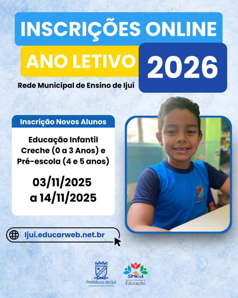 Segundo o secretário de Educação, Cláudio de Souza, as inscrições devem ser realizadas exclusivamente de forma virtual, pelo site ijui.educarweb.net.br, no menu “Inscrições e designações para novas vagas nas escolas municipais”. Os pais ou responsáveis devem preencher corretamente os dados da criança e da família, selecionar até três escolas e indicar o turno de preferência.