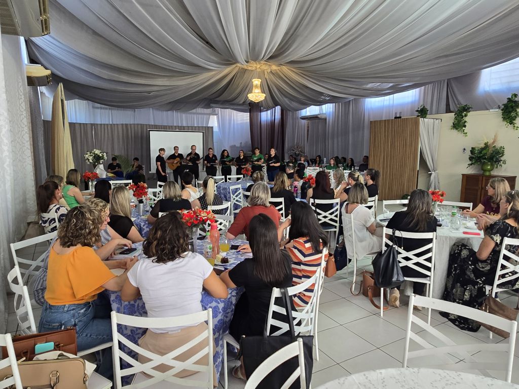 A Secretaria Municipal de Educação realizou, nesta terça-feira (02), uma reunião com as 26 diretoras das escolas municipais de Ijuí. O encontro teve como objetivo alinhar o calendário do ano letivo de 2026, repassar orientações e esclarecer dúvidas sobre questões pedagógicas e administrativas. A abertura contou com apresentação do Coral Vocal da SMED.