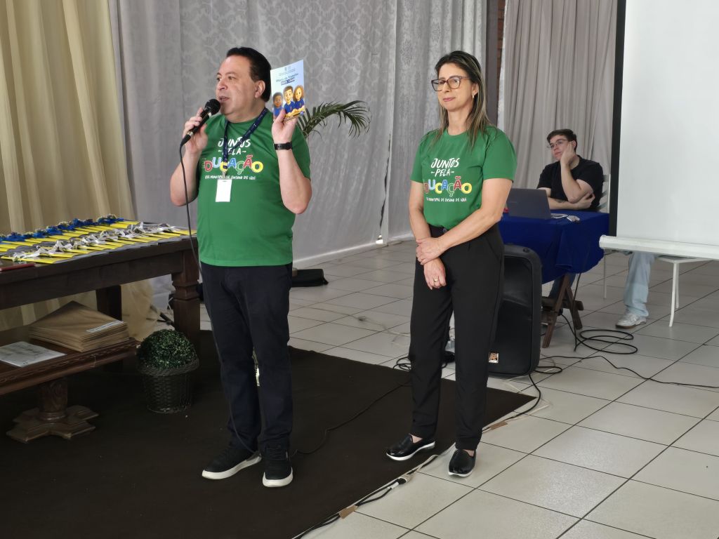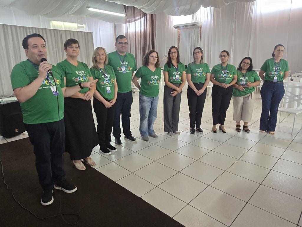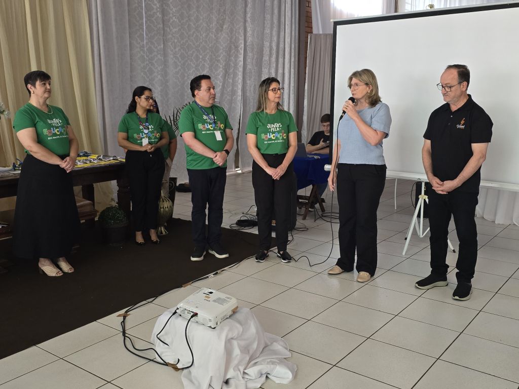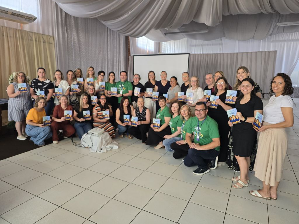 Durante a atividade, o secretário de Educação, Cláudio de Souza, a adjunta Andréia da Rosa e as equipes pedagógica e administrativa entregaram às diretoras o Plano de Trabalho 2025/2028, o regimento interno atualizado de cada escola e o livro Diretrizes para o Ensino de Computação na Educação Básica: Complementando a BNCC na Rede Municipal de Ensino de Ijuí.