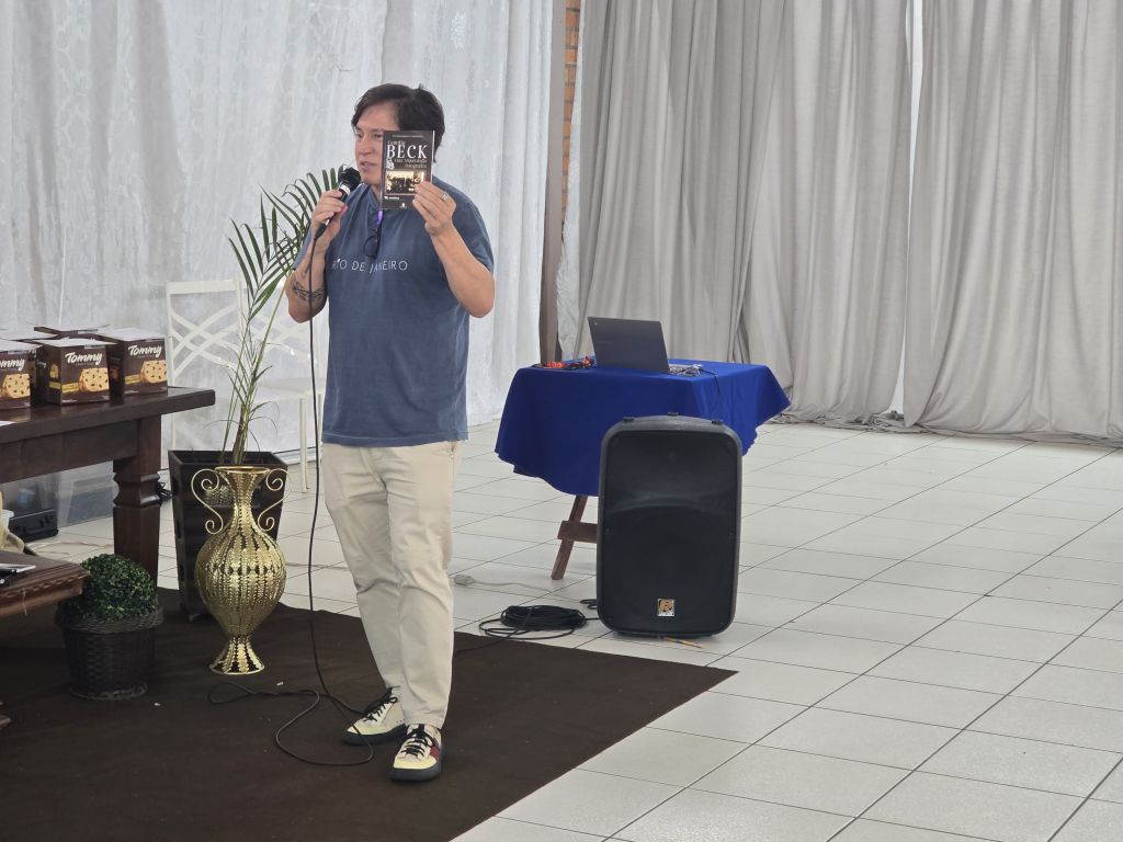 No turno da tarde, o encontro iniciou com apresentação musical do acadêmico de Direito da Unijuí, Paulo Ricardo Camargo, e uma apresentação cultural de estudantes da EMF 15 de Novembro. As diretoras também receberam dois exemplares de obras do professor Ivo Canabarro para uso nas escolas.