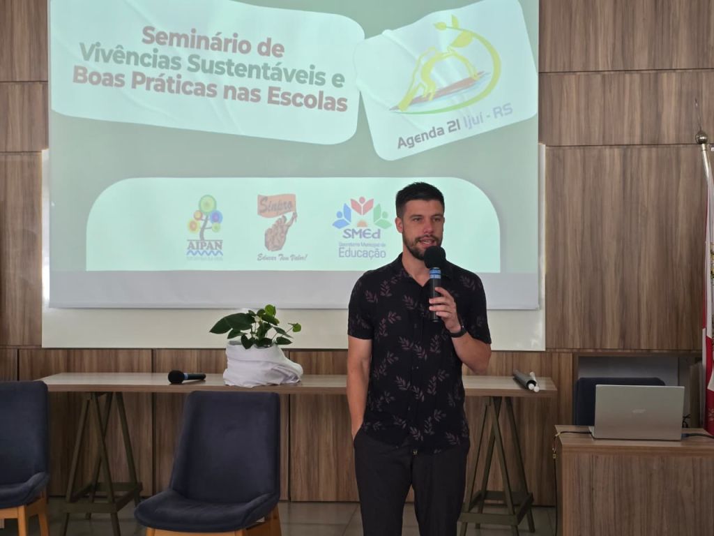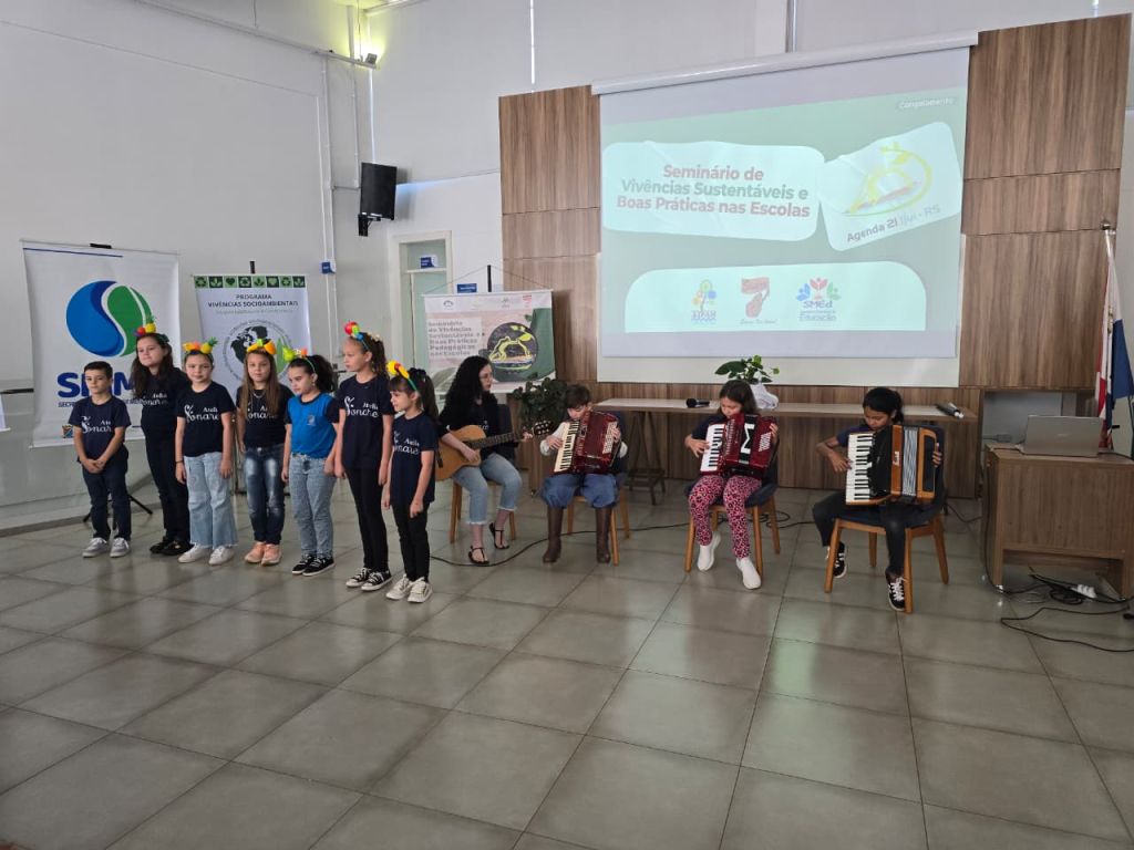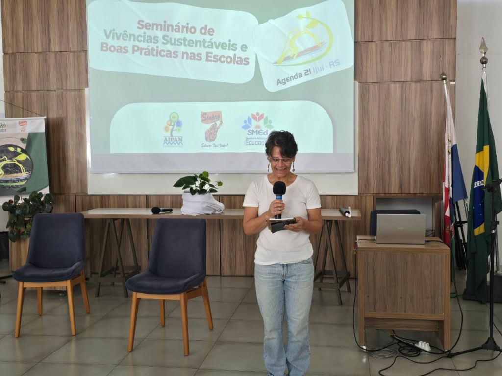 Nesta quinta-feira (11), ocorreu no Salão de Eventos da Unijuí, o Seminário de Vivências Sustentáveis e Boas Práticas nas Escolas. O evento foi promovido pelo Fórum da Agenda 21, em parceria com a Secretaria Municipal de Educação (SMEd), 36ª Coordenadoria Regional de Educação (CRE) e Conselho Municipal de Energia e Meio Ambiente (Consema).