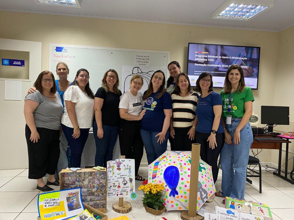 As professoras do 1º e 2º ano dos anos iniciais participaram, nesta quinta-feira (11), do último encontro das formações de alfabetização do ano letivo de 2025. A atividade foi conduzida pela assessora pedagógica da Secretaria Municipal de Educação (SMEd), Rafaela Gusatti.