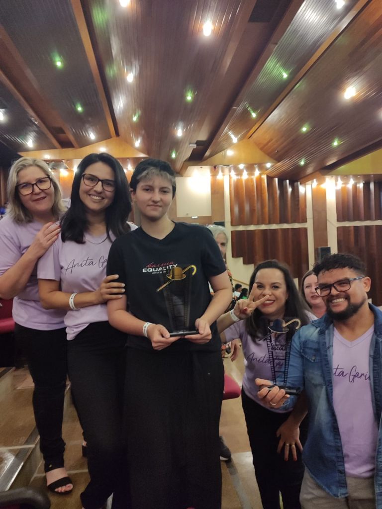 A estudante Sabrina Acosta Villanova, da Escola Municipal Fundamental Anita Garibaldi, conquistou o 1º lugar na categoria Infanto-Juvenil Animação do 7º Festival Estudantil Curtas na Escola, com o curta intitulado Linha Direta. Os professores orientadores, Flávio Félix e Cheila Cristiane de Souza, também foram agraciados.