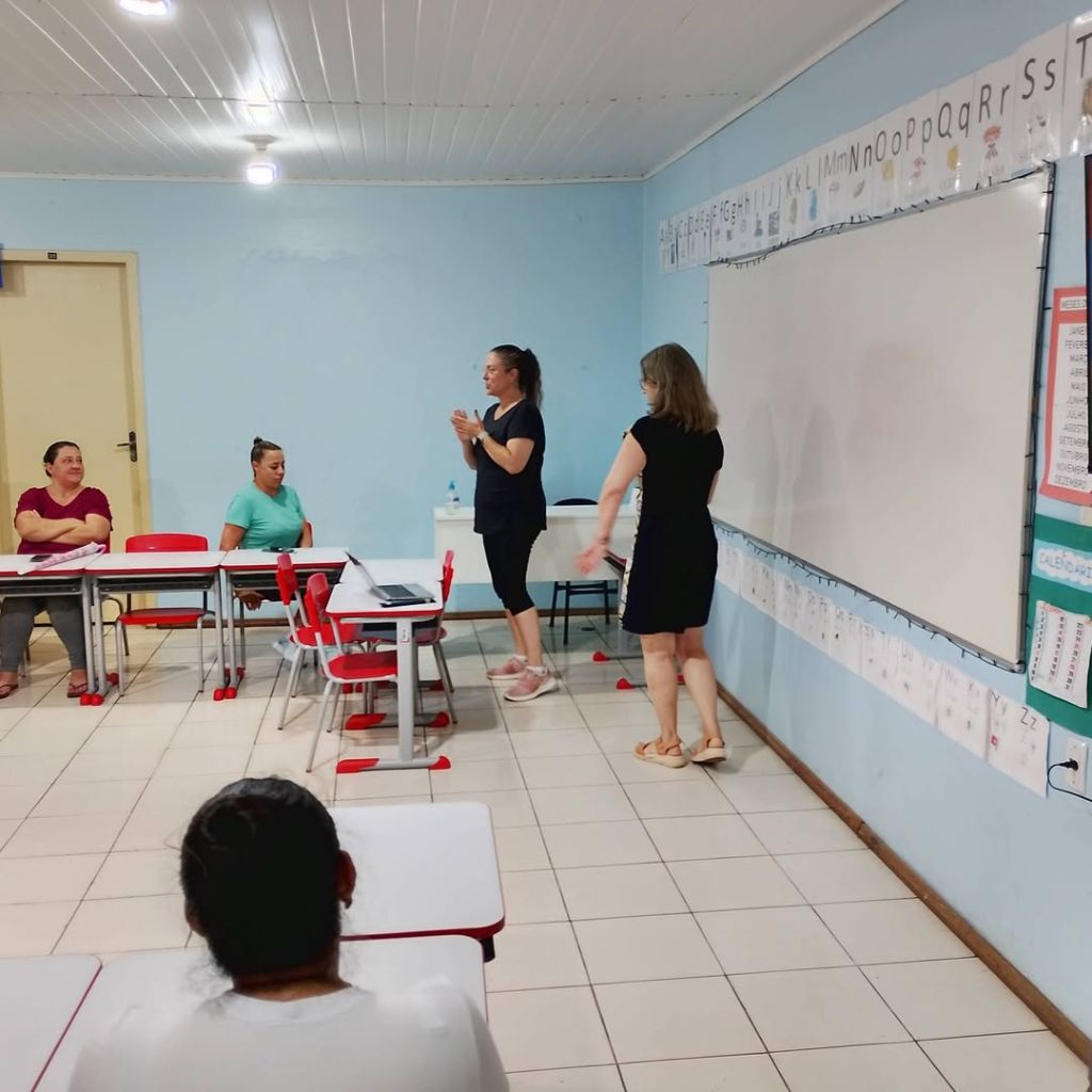 A reunião foi conduzida pelas coordenadoras da Educação Infantil, professora Giulia Wommar Pase, e do Ensino Fundamental I, professora Carin Mattioni, com a participação dos professores e auxiliares da Educação Infantil. Na ocasião, também foi apresentada às famílias a professora que atuará no 1º ano em 2026.