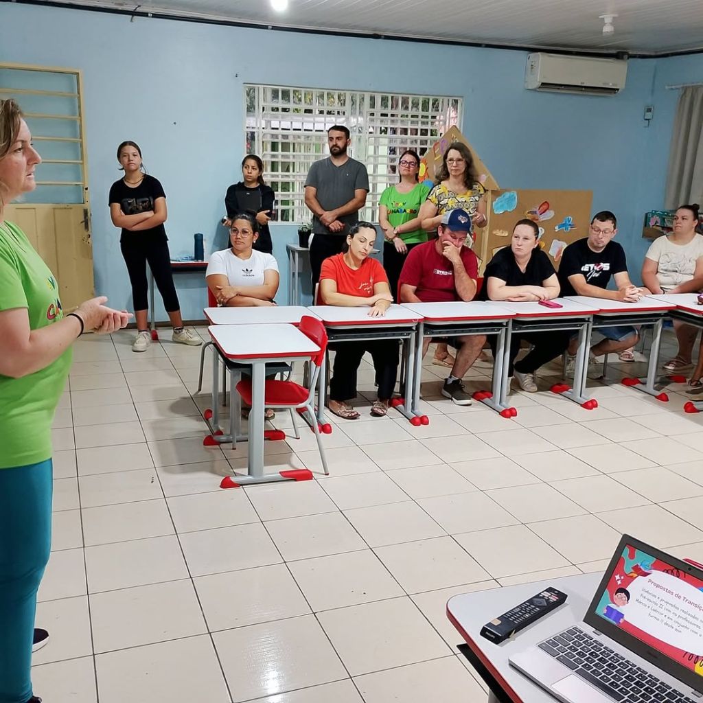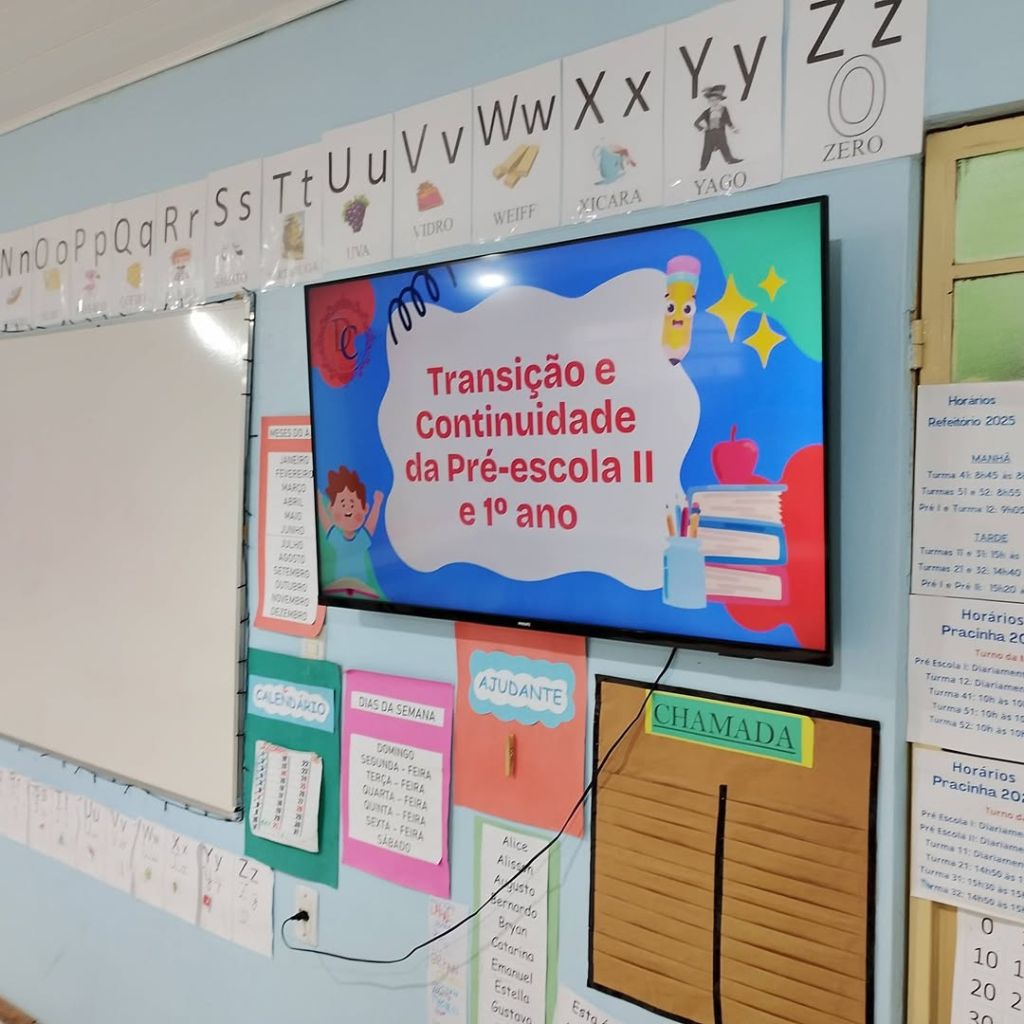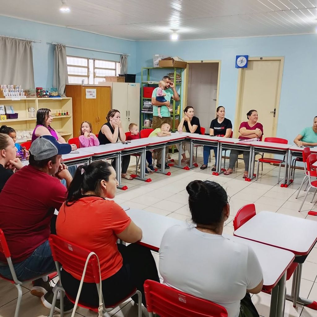 Nesta segunda-feira (15), a Escola Municipal Fundamental Davi Canabarro realizou a reunião de transição e continuidade da pré-escola para o 1º ano do Ensino Fundamental. O encontro teve como objetivo dialogar com as famílias sobre a organização do primeiro ano e apresentar o trabalho desenvolvido ao longo da Educação Infantil, com foco no desenvolvimento integral das crianças.