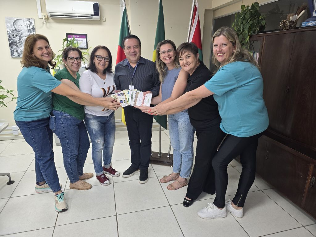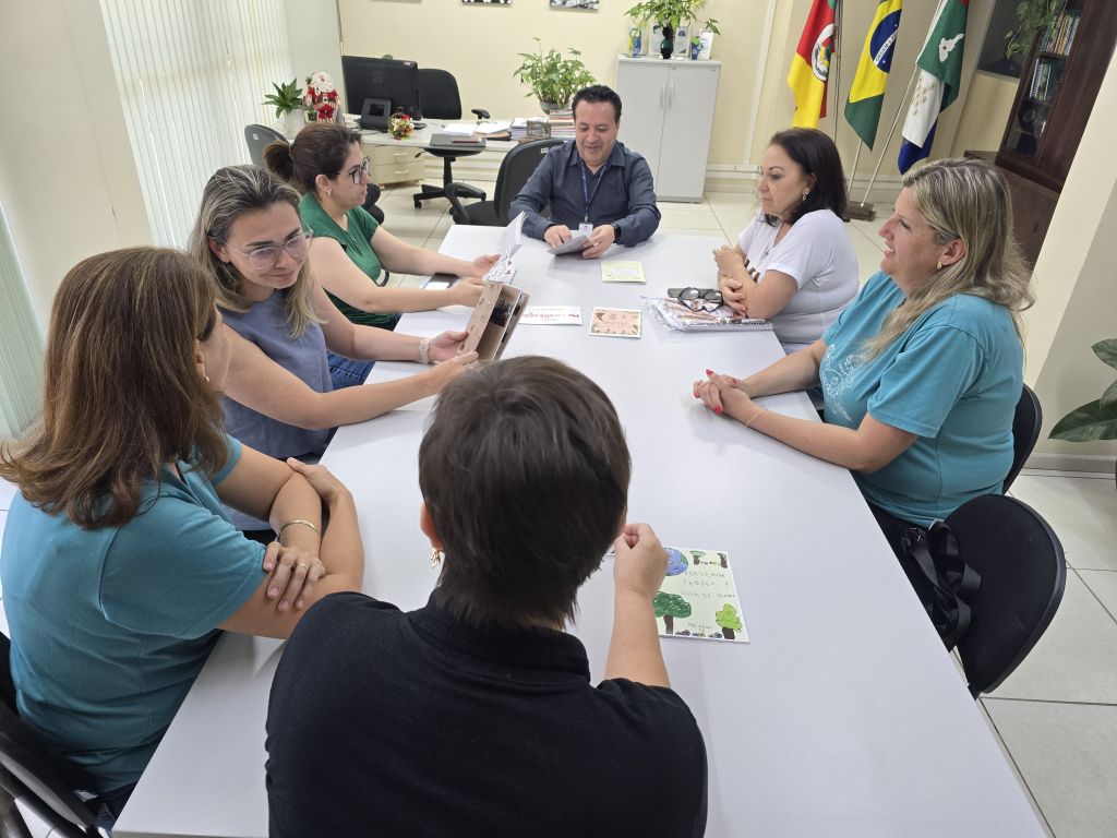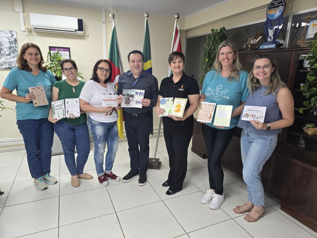 Participaram do momento a vice-diretora Simone Friederichs, as coordenadoras pedagógicas da Educação Infantil Leila Karlinski e Lidiane Dall’Osto, além das professoras da instituição, Raquel Serves e Elisandra Dallepiane. Na ocasião, o grupo apresentou o processo de escrita, organização e sistematização das obras, destacando a importância da documentação pedagógica em formato de livro como forma de registrar e comunicar as práticas desenvolvidas com as crianças.