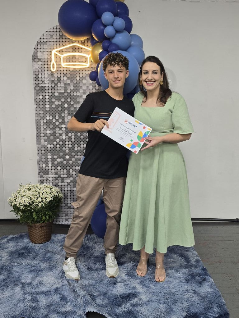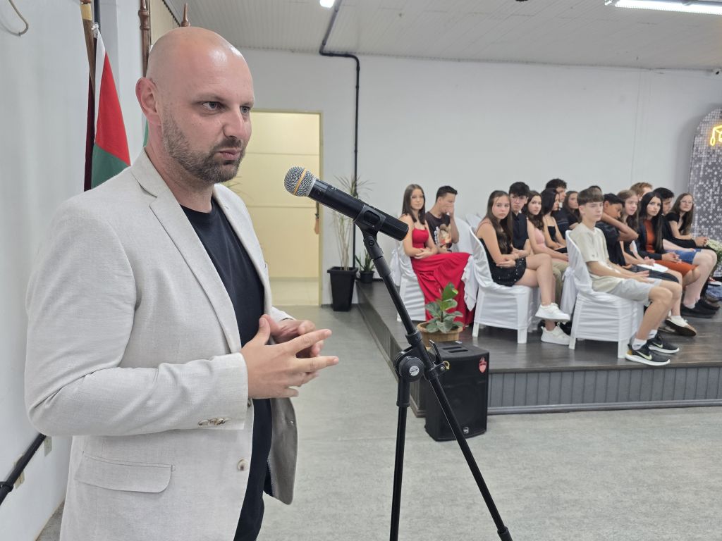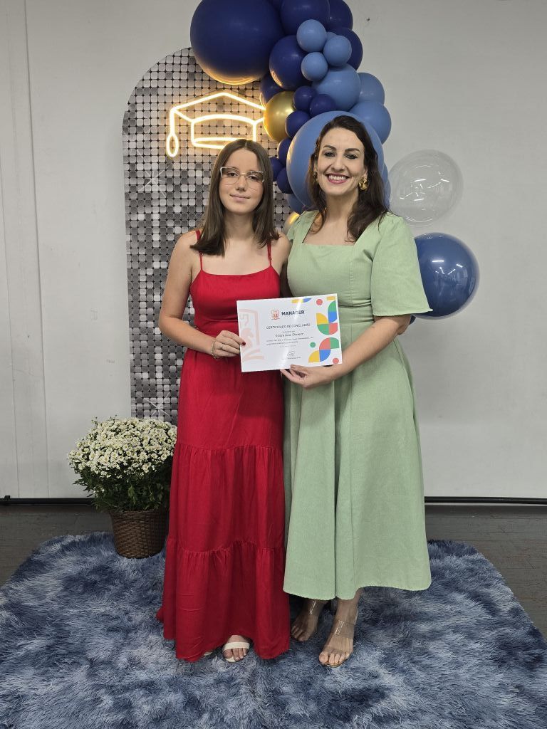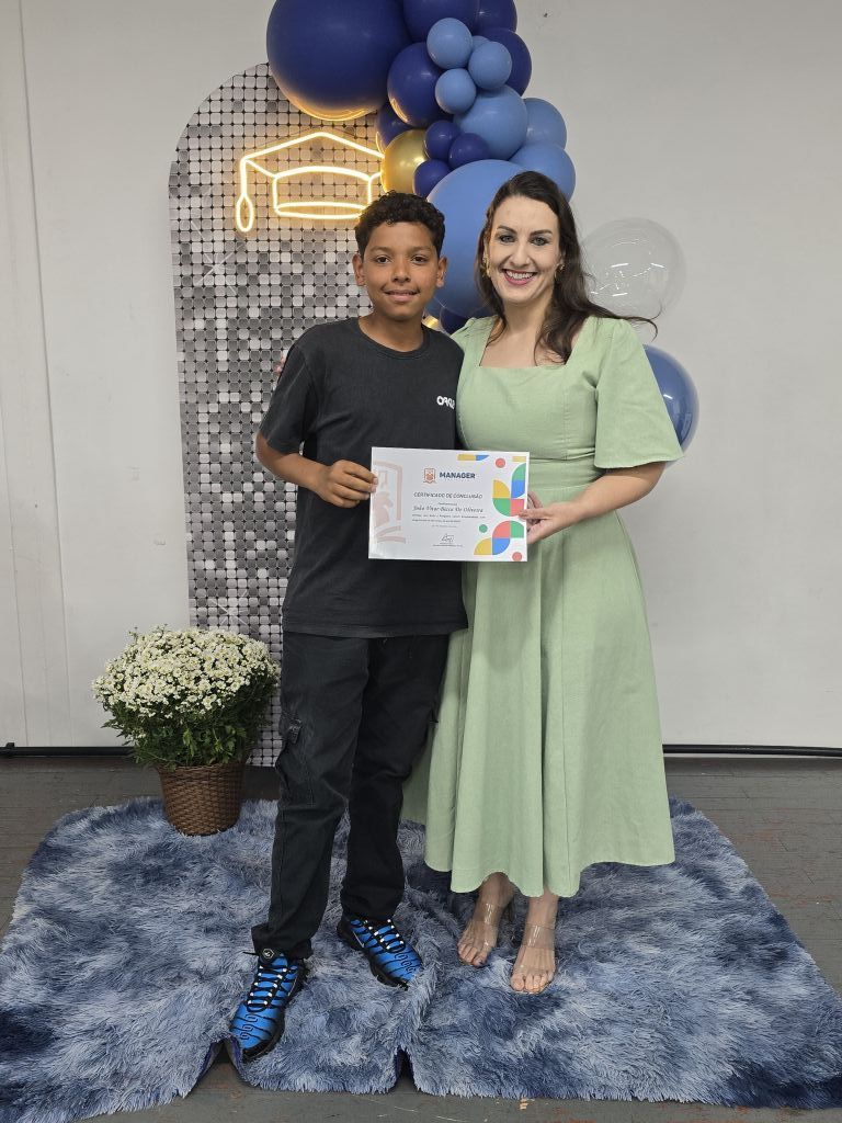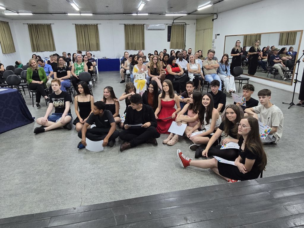 A diretora da EMF Soares de Barros, Rosa Mari Vieira Macuglia, também se manifestou, ressaltando os desafios enfrentados e as aprendizagens construídas pelos estudantes ao longo do programa. A solenidade contou ainda com a presença da coordenadora pedagógica da SMEd, Denise Siekierski, da secretária adjunta Andréia da Rosa, da chefe de gabinete Rosangela Schimanoski, da professora facilitadora do projeto, além de pais e responsáveis.