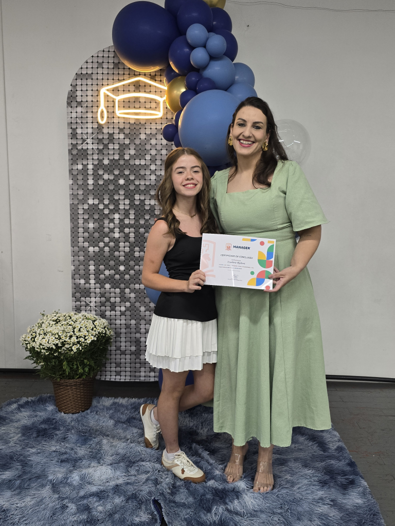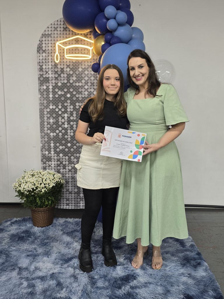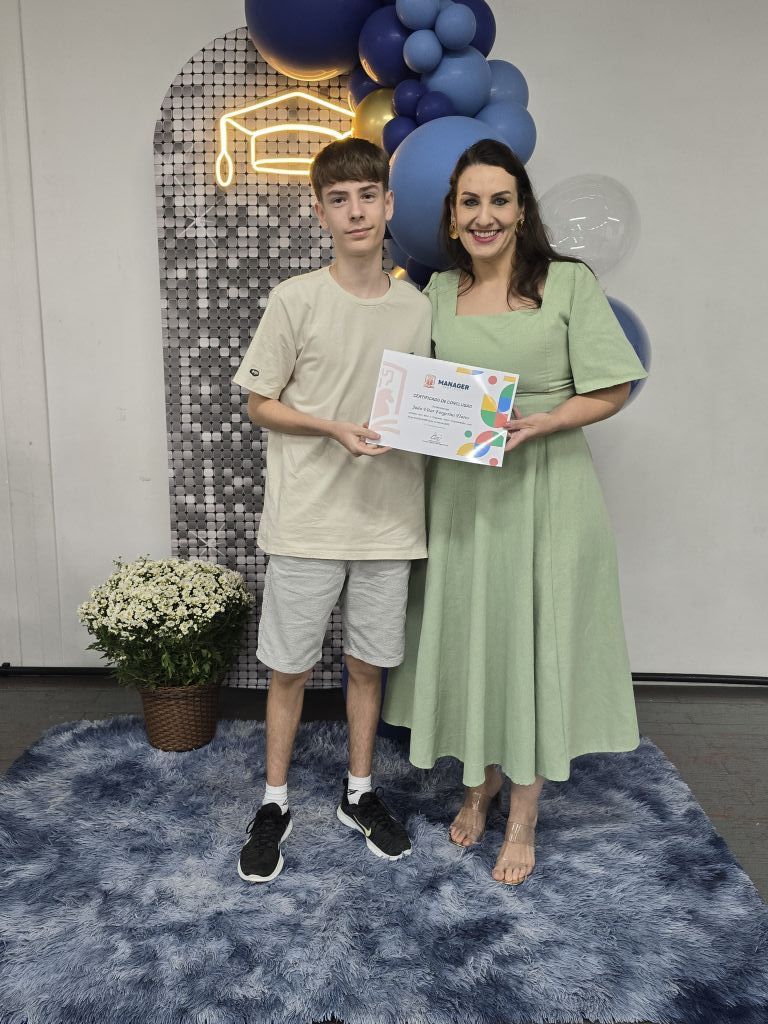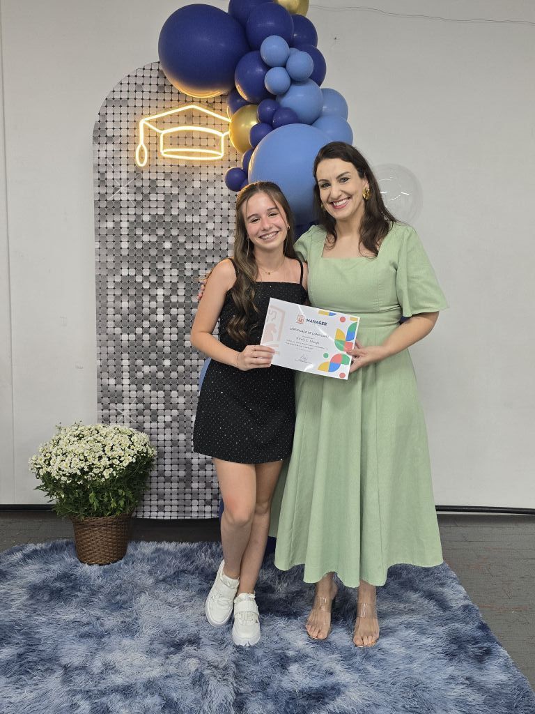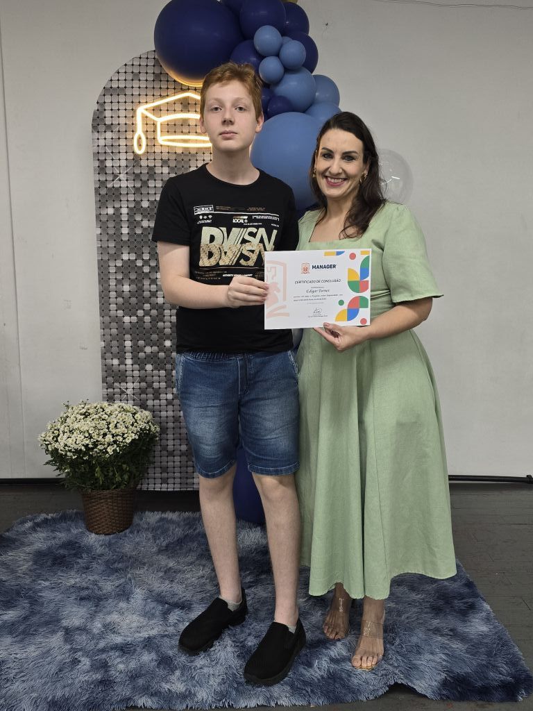 O diretor do Instituto Manager, Anderson Detogni, parabenizou a professora facilitadora Fabiana Bohrer pela condução do projeto e destacou o desempenho da turma, que participou da formação por quatro meses e conquistou o primeiro lugar entre mais de seis mil estudantes participantes em todo o estado.