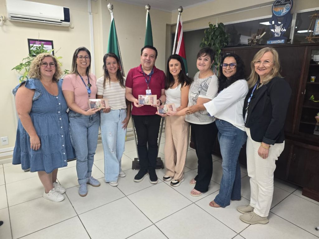 Na manhã desta sexta-feira (19), o secretário municipal de Educação, Cláudio de Souza, recebeu a diretora da Escola Municipal Infantil Independência, Andréia Cronst, e as auxiliares de educação Juliana Cavalheiro e Rubriane de Britto, que realizaram a entrega da publicação “Um olhar para a Educação Inclusiva”.