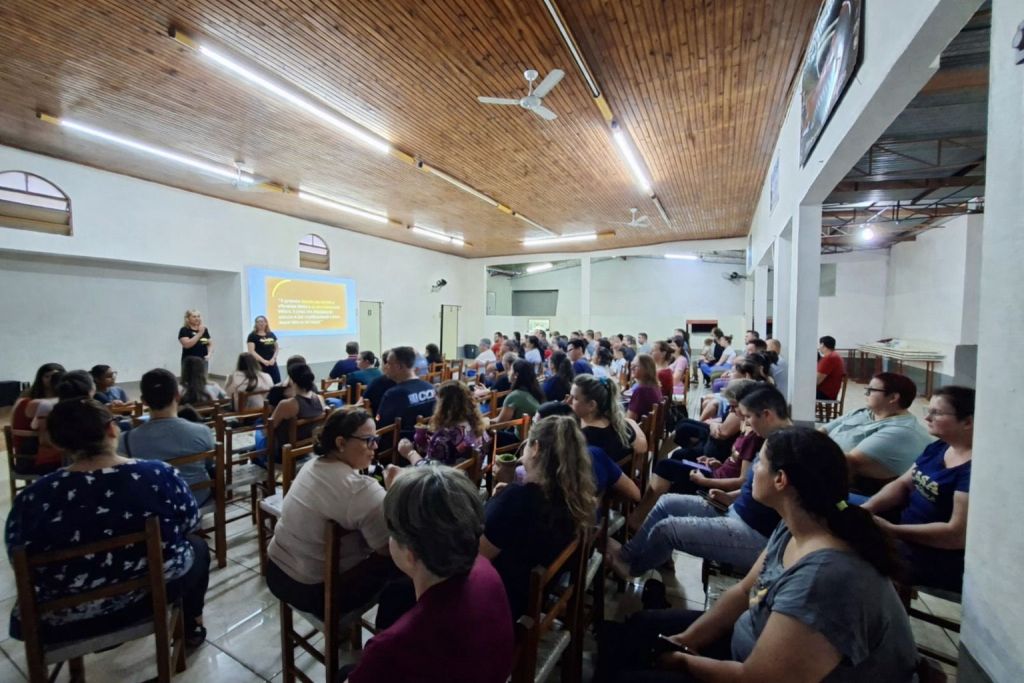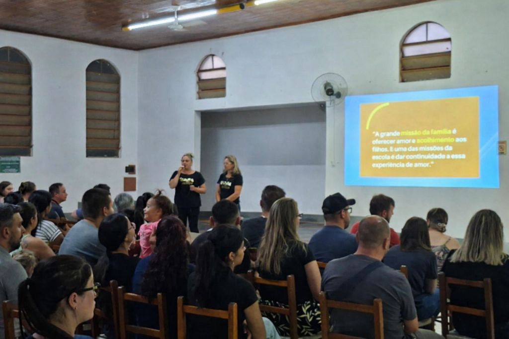 A equipe diretiva e pedagógica da Escola Municipal Infantil Casa da Criança realizou, nesta quarta-feira (25), reunião com as famílias dos estudantes da instituição. O encontro ocorreu no Salão da Igreja Católica do bairro Mundstock.
