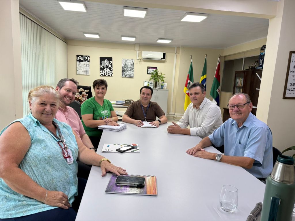Na tarde desta quinta-feira (12), o secretário municipal de Educação, Cláudio de Souza, e a coordenadora pedagógica da Secretaria Municipal de Educação (SMEd), Denise Siekierski, receberam o secretário de Desenvolvimento Econômico, Ricardo Duarte, o secretário adjunto Marcos Noll e servidores da pasta para uma reunião para tratar sobre o Programa Qualifica + Ijuí.