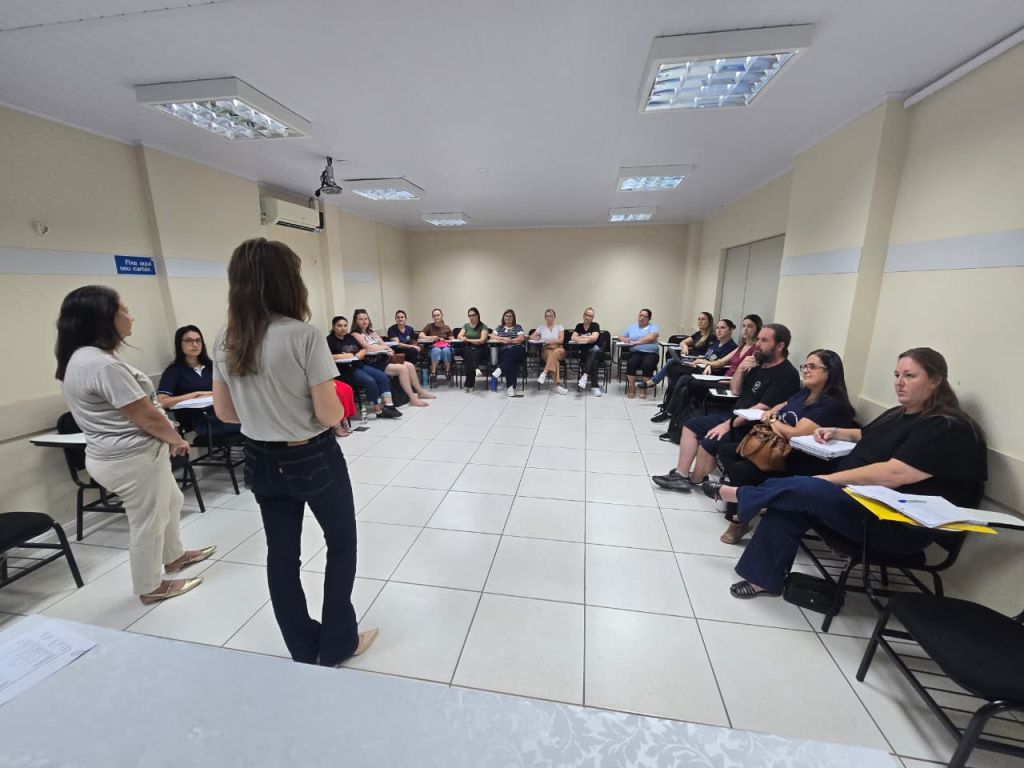 A formação foi conduzida pelas assessoras pedagógicas da Rede de Proteção à Criança e ao Adolescente e da FICAI 4.0 da SMEd, Neiva Maria Pereira da Silva e Ângela Link de Jesus, que abordaram a qualificação dos fluxos de atendimento e o fortalecimento do trabalho intersetorial entre as diferentes políticas públicas.
