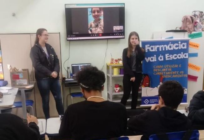 O Programa Farmácia Vai à Escola desenvolvido pela assistência farmacêutica do município com apoio da SMS e SMEd aborda o uso racional e descarte correto de medicamentos, assim como o acesso ao serviço da assistência farmacêutica. O projeto piloto foi desenvolvido com estudantes das escolas Amazonas e Eugênio Storch, do 8º e 5º ano, respectivamente. Já foi realizado também a capacitação para os professores das escolas e, agora, a ação com as crianças. Ainda será desenvolvido o projeto com toda comunidade escolar e a previsão é de estender para as demais escolas do município