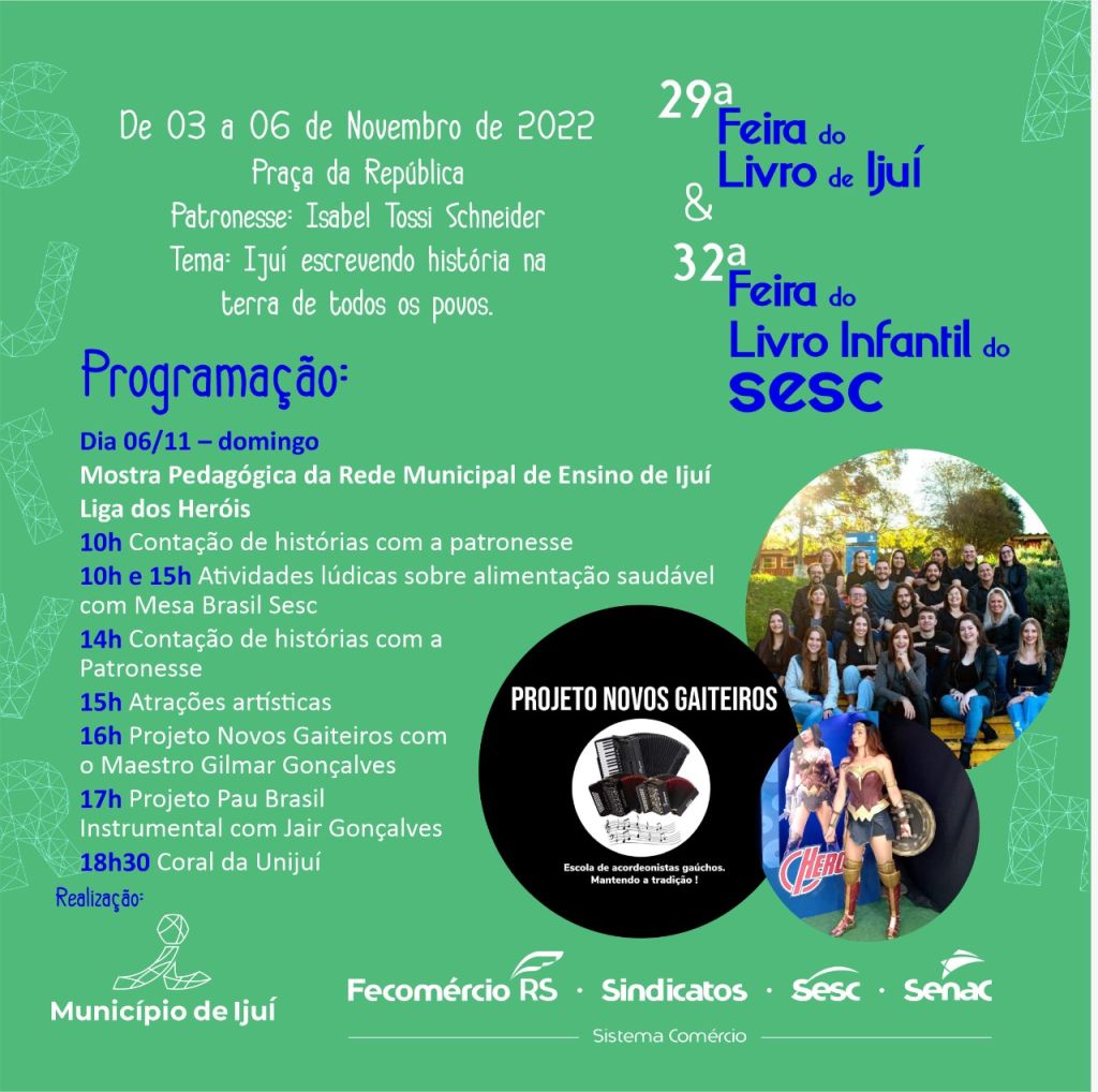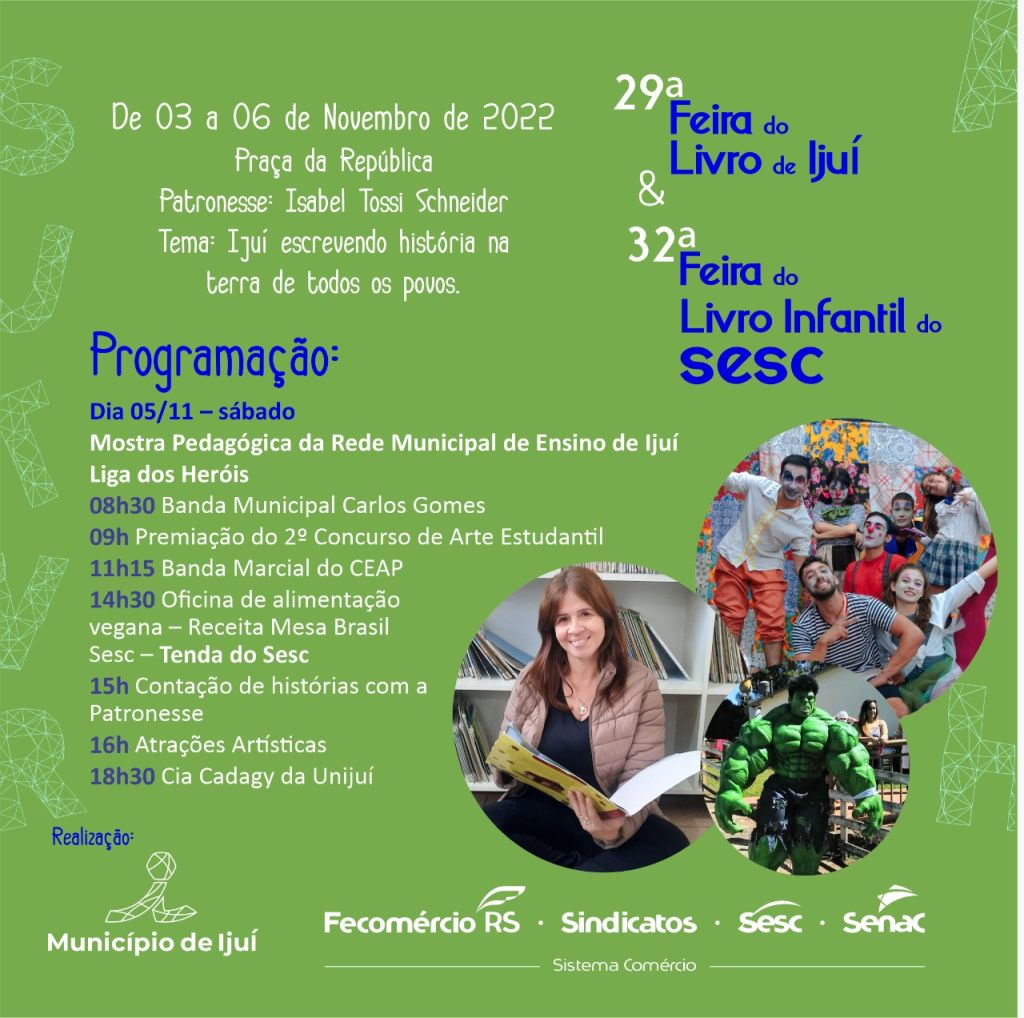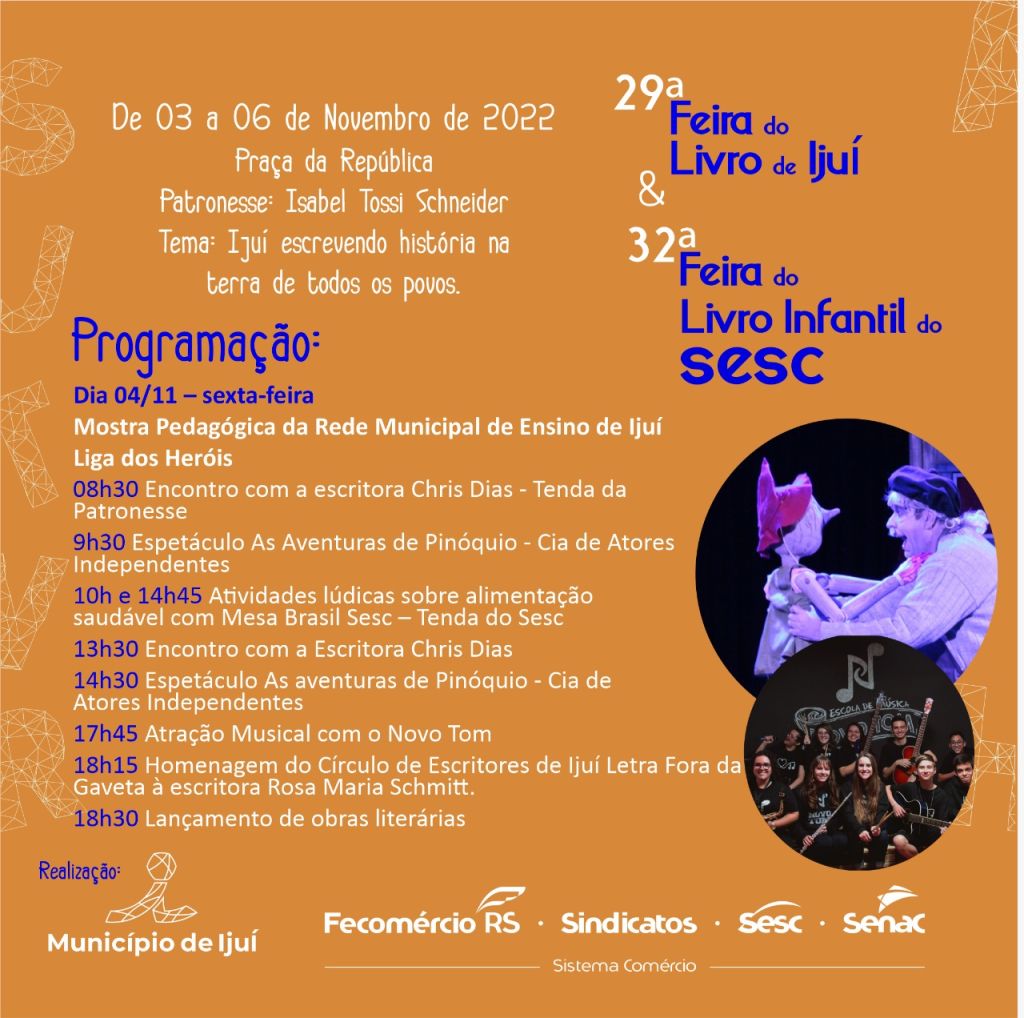 Hoje inicia a Feira do Livro em Ijuí. O prefeito, Andrei Cossetin deverá participar da abertura que ocorrerá às 19:00 horas. O tema desta vigésima nona edição é “Ijuí escrevendo história na terra de todos os povos”e tem como patronesse Isabel Tossi Schneider. O evento se estende até o próximo dia 06 de novembro. Confira a programação: