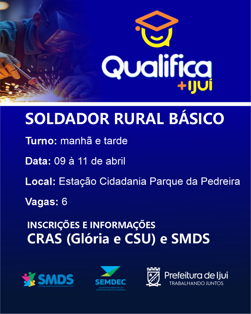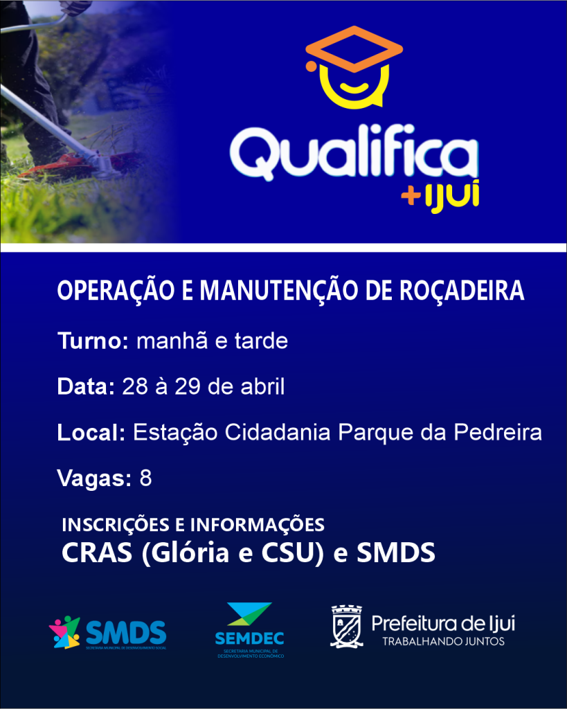 O Qualifica + Ijuí é um programa do Governo Municipal, desenvolvido por meio das secretarias de Desenvolvimento Social e Econômico, que oferece cursos gratuitos de capacitação para moradores inscritos no Cadastro Único ou em situação de vulnerabilidade social.