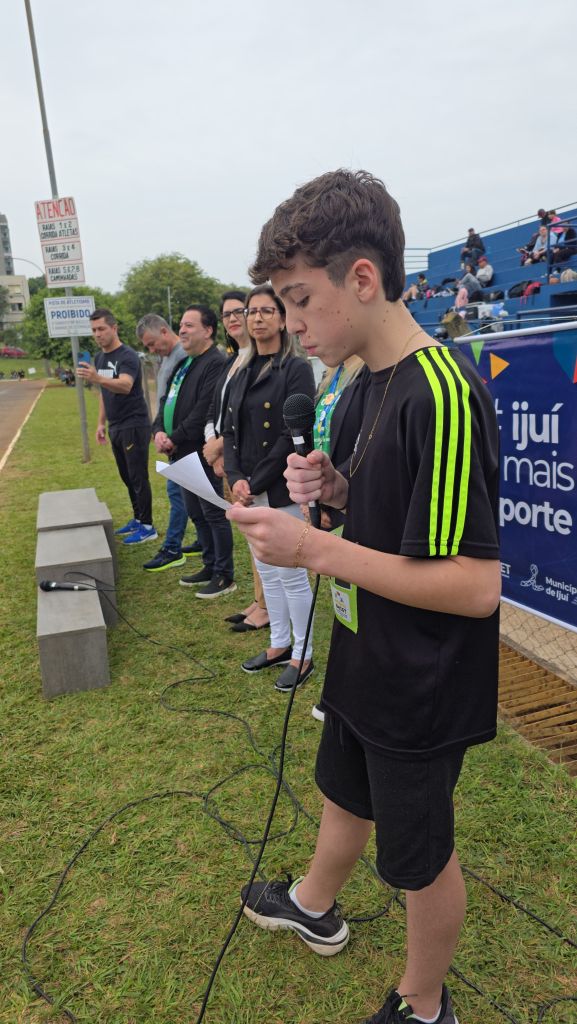 Na abertura, o estudante Arthur Casarotto Rigon, da Escola Municipal Fundamental Soares de Barros, foi o responsável por proferir o juramento do atleta.