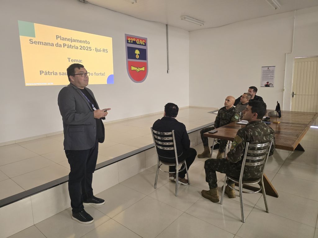 Na tarde desta quinta-feira (07), ocorreu no auditório do 27º Grupo de Artilharia de Campanha (GAC) a reunião da Comissão Organizadora da Semana da Pátria 2025 em Ijuí. O encontro teve como objetivo alinhar os preparativos para os três principais momentos do evento: a chegada do Fogo Simbólico, a abertura oficial da Semana da Pátria e o tradicional desfile cívico-militar de 7 de setembro.