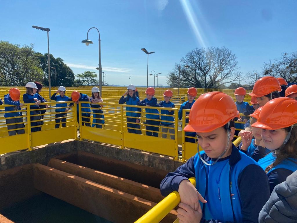 Os estudantes do 5º ano da Escola Municipal Fundamental Soares de Barros realizaram, nesta quinta-feira (11), uma visita de estudos à Estação de Tratamento de Água da Corsan, em Ijuí. A atividade foi organizada pelas professoras de Ciências, Marluci, Maisa e Rose, com o objetivo de aproximar os conteúdos trabalhados em sala de aula da prática cotidiana.