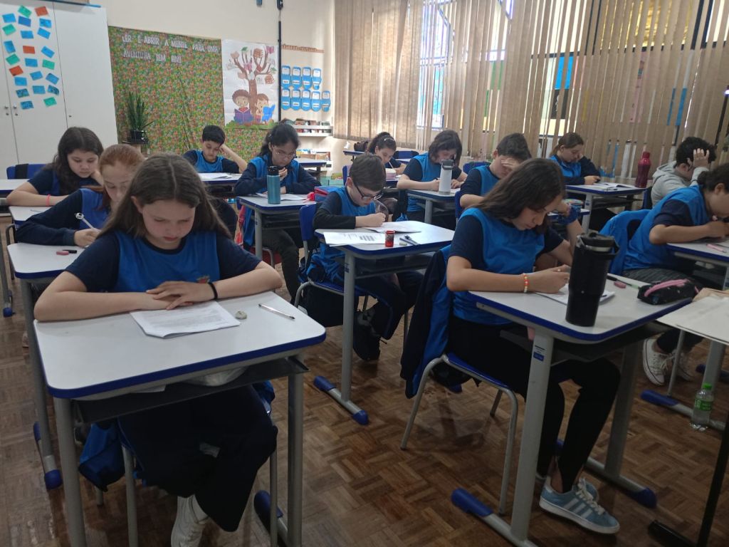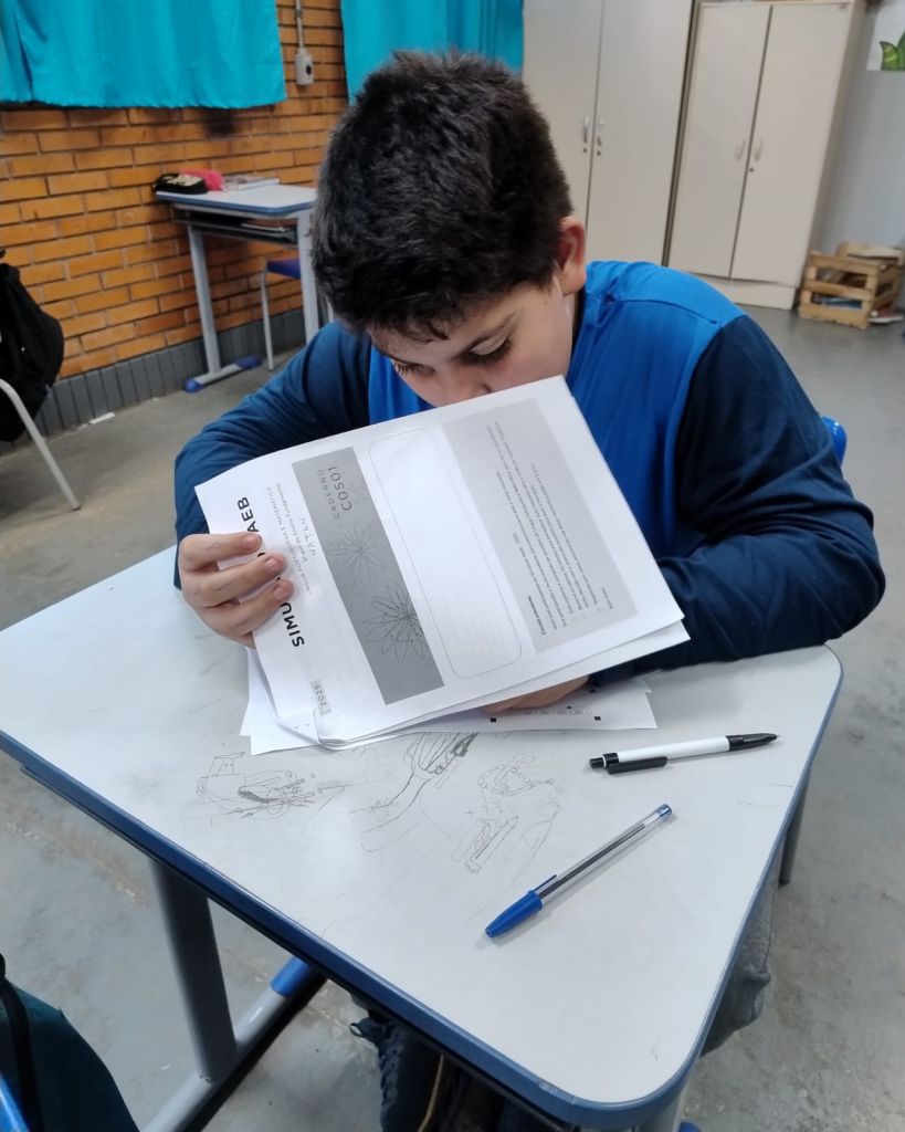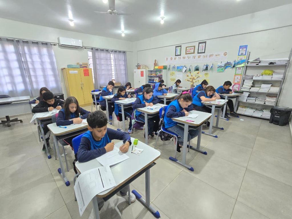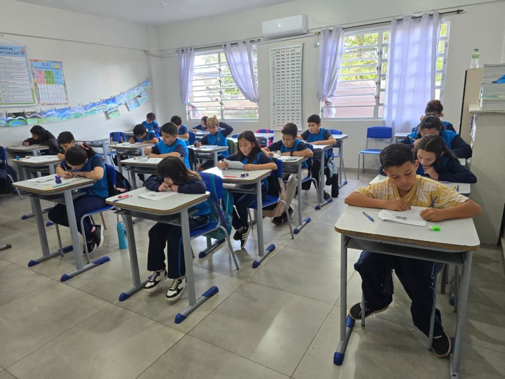 No primeiro dia do simulado, os estudantes do 2º ano respondem à prova de Língua Portuguesa, enquanto os do 5º ano realizam as avaliações de Língua Portuguesa e Matemática.