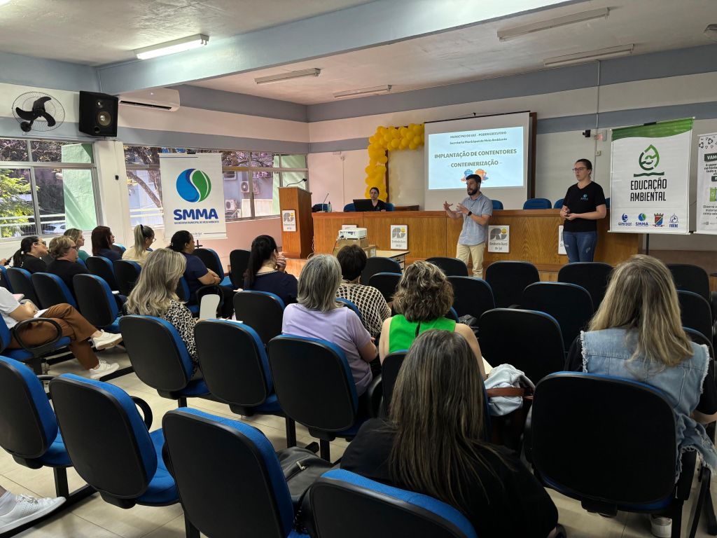 A Secretaria Municipal de Meio Ambiente (SMMA) realizou, na manhã desta segunda-feira (03), no auditório do Sindicato Rural de Ijuí, uma reunião de alinhamento com as equipes diretivas das 26 escolas municipais sobre a implantação de contêineres próximos aos educandários.