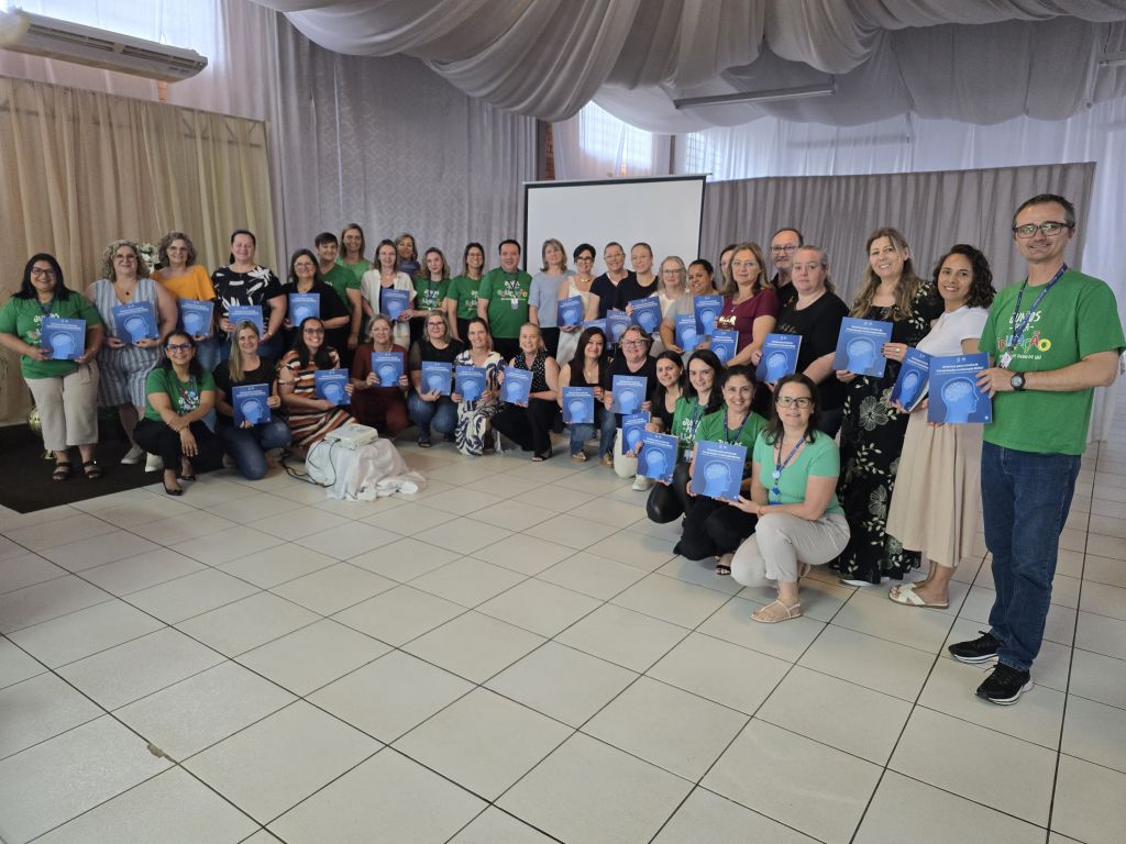 Durante a atividade, o secretário de Educação, Cláudio de Souza, a adjunta Andréia da Rosa e as equipes pedagógica e administrativa entregaram às diretoras o Plano de Trabalho 2025/2028, o regimento interno atualizado de cada escola e o livro Diretrizes para o Ensino de Computação na Educação Básica: Complementando a BNCC na Rede Municipal de Ensino de Ijuí.