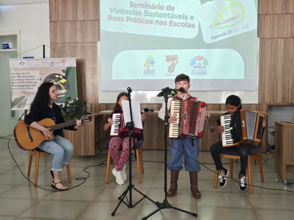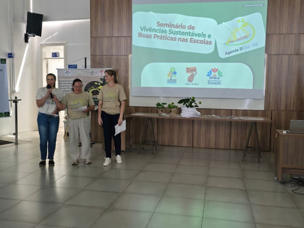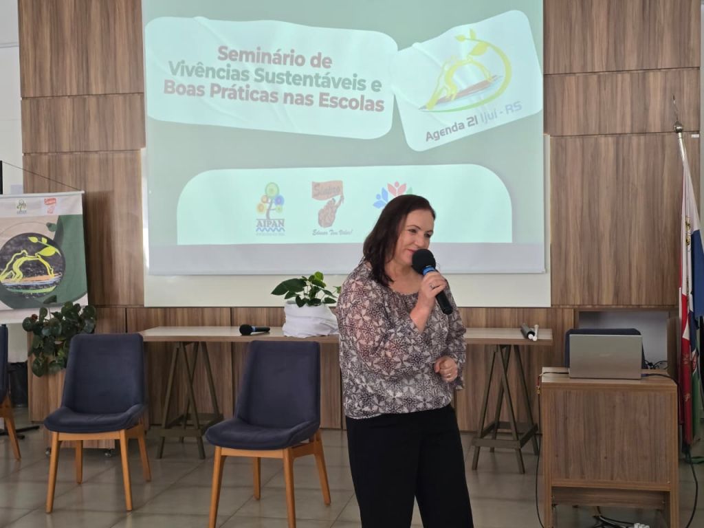Nesta quinta-feira (11), ocorreu no Salão de Eventos da Unijuí, o Seminário de Vivências Sustentáveis e Boas Práticas nas Escolas. O evento foi promovido pelo Fórum da Agenda 21, em parceria com a Secretaria Municipal de Educação (SMEd), 36ª Coordenadoria Regional de Educação (CRE) e Conselho Municipal de Energia e Meio Ambiente (Consema).