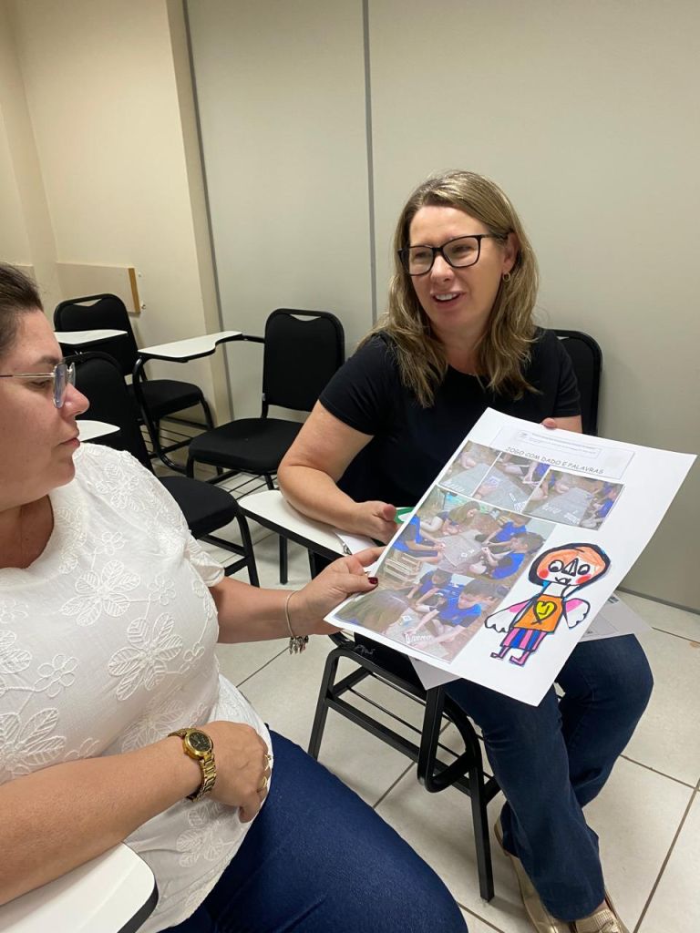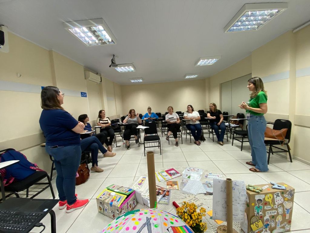 As professoras do 1º e 2º ano dos anos iniciais participaram, nesta quinta-feira (11), do último encontro das formações de alfabetização do ano letivo de 2025. A atividade foi conduzida pela assessora pedagógica da Secretaria Municipal de Educação (SMEd), Rafaela Gusatti.