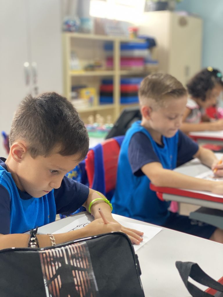 Nos primeiros meses do 1º ano, os tempos e espaços escolares são organizados com alternância entre atividades individuais e coletivas, incluindo propostas lúdicas que favorecem a reflexão sobre a escrita e situações reais de comunicação. A proposta pedagógica busca garantir que a criança seja protagonista de suas aprendizagens, reconhecendo que a infância permanece presente também no Ensino Fundamental.