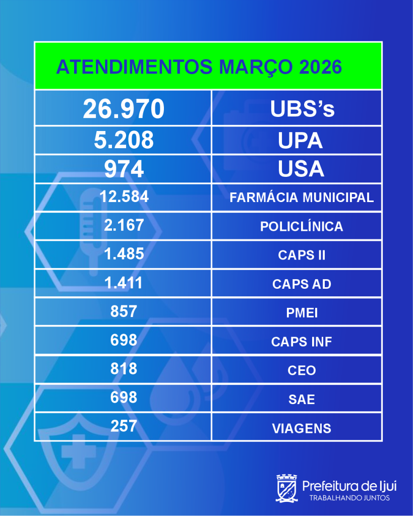 Segundo os dados da secretaria, no mesmo período, foram realizados 26.973 atendimentos em todas as unidades básicas de saúde, com destaque para as UBS do Meio Rural, que realizou 2.329 atendimentos e dos bairros Getúlio Vargas e Thomé de Souza que registraram mais de 1900 atendimentos cada uma no mês.