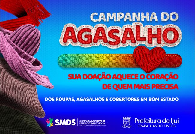 No próximo sábado, dia 21 entre 9:00 e 12:00, a Secretaria Municipal de Desenvolvimento Social estará recebendo doação de roupas, agasalhos e cobertores em bom estado. A campanha visa atender uma demanda crescente desse tipo de peças. “Verificamos um aumento do número de solicitações na secretaria. A doação é muito importante para apoiarmos essas pessoas”, comentou Zeca Buzatto, secretário da SMDS.