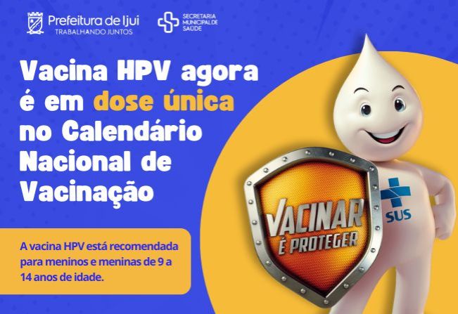 A partir desta semana, o Ministério da Saúde passa a adotar a dose única da vacina HPV no Calendário Nacional de Vacinação para meninos e meninas dos 09 aos 14 anos de idade.