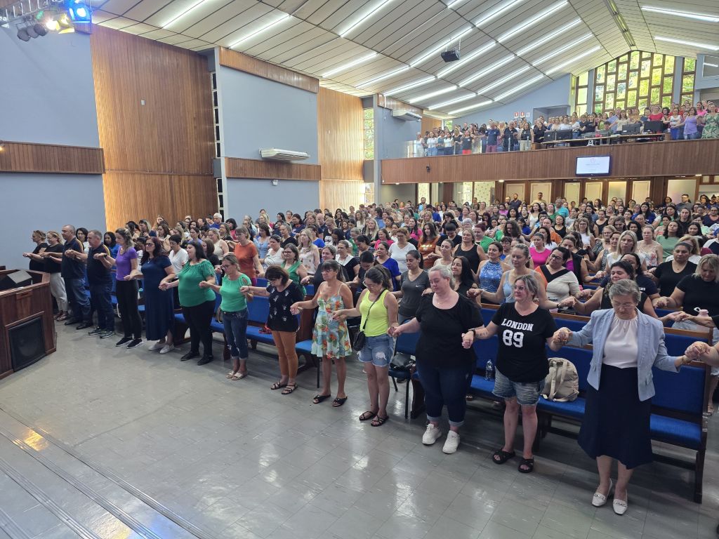 A manhã desta segunda-feira (03) marcou o início do ano letivo de 2025 na Rede Municipal de Ensino de Ijuí, para equipes diretivas e profissionais da educação que atuam nas escolas. O evento, realizado na Primeira Igreja Batista, reuniu mais de 500 servidores da educação e contou com momentos de acolhimento e integração.
